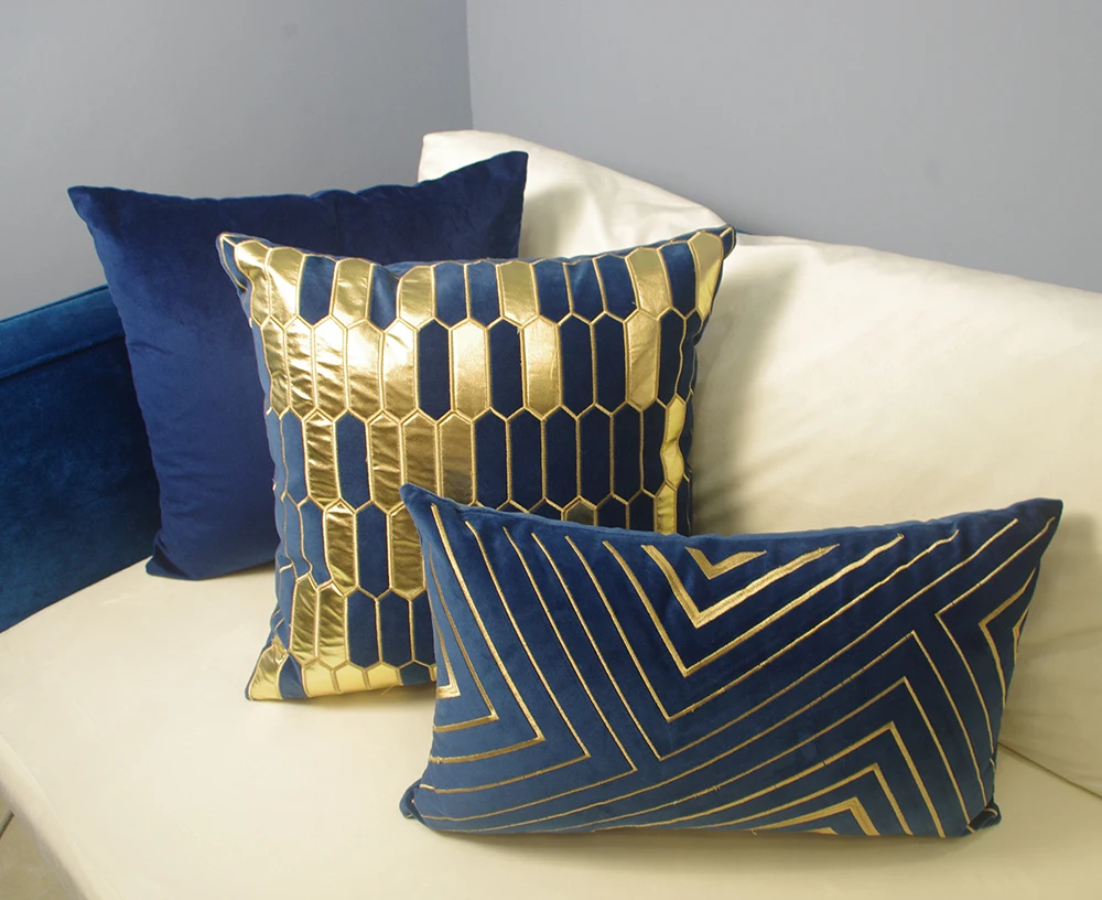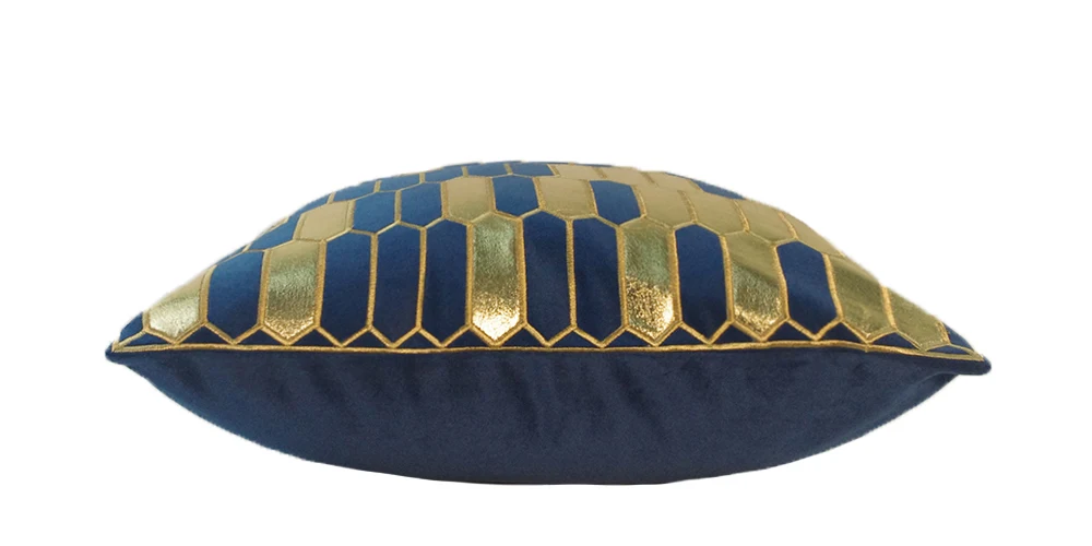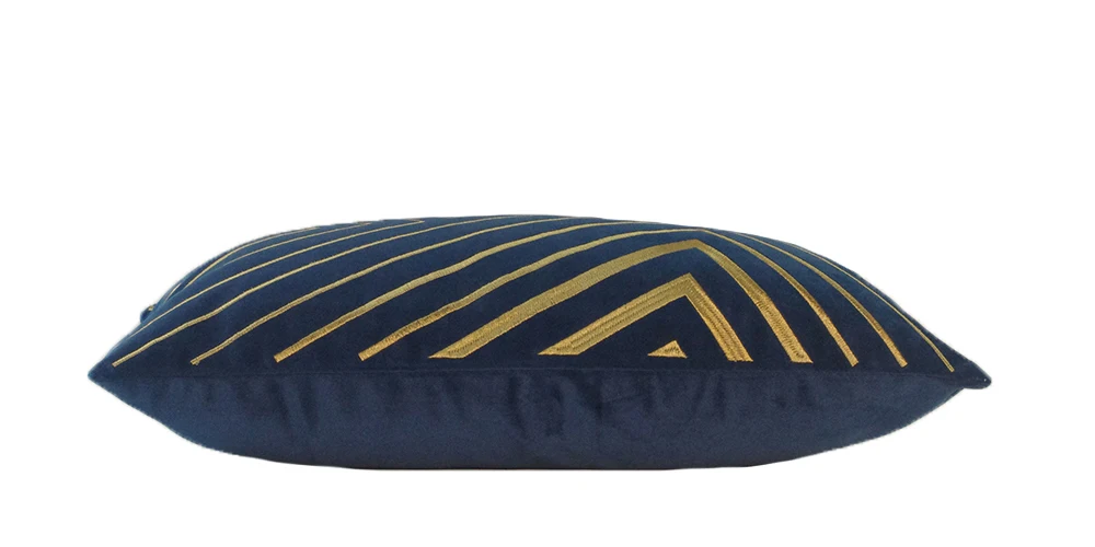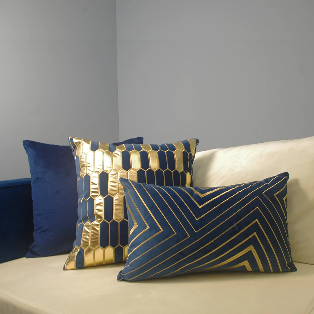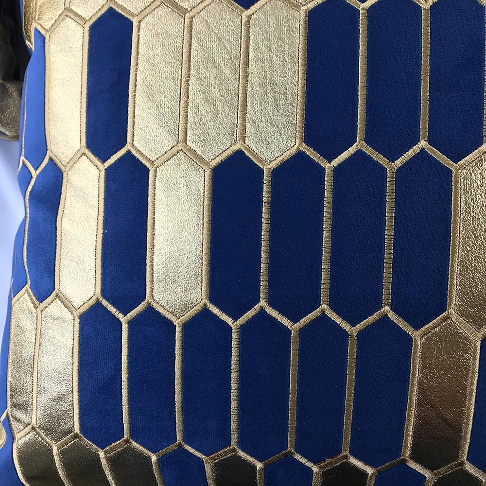Бархатный Чехол для подушки с геометрической вышивкой, синий, темно-синий, золотой