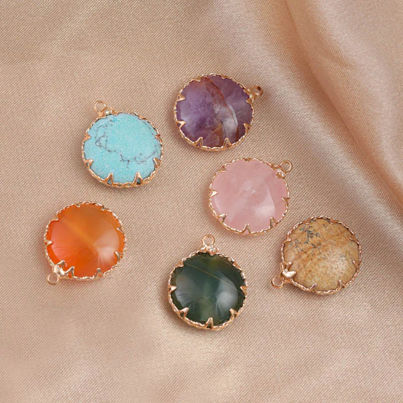 DC 2 шт.лот подвески из натурального камня бирюза круглое ожерелье браслет медный поплавок подвески для женщин DIY ремесла ювелирных изделий Поиск