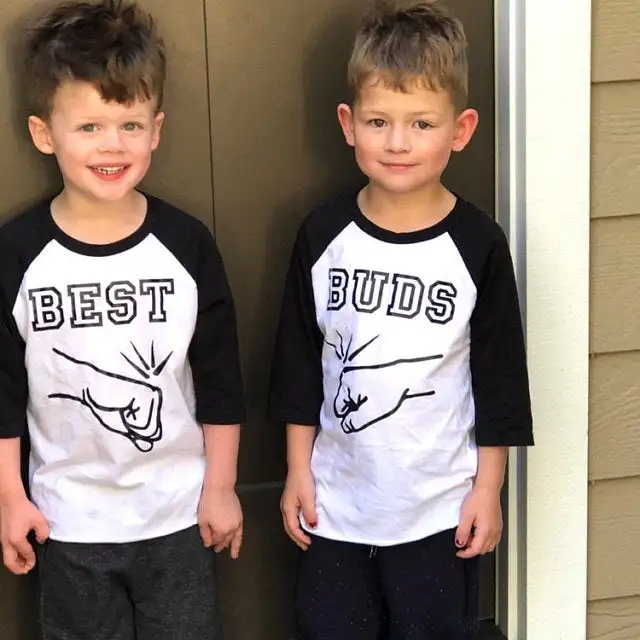 Братьев и сестер, комплект для мальчиков с рубашкой, лучшие футболки Друзья лучшие друзья; Рубашка с рукавом-реглан для мальчиков "лучшие друзья" Бутоны футболки кулачки рубашка BFF рубашка
