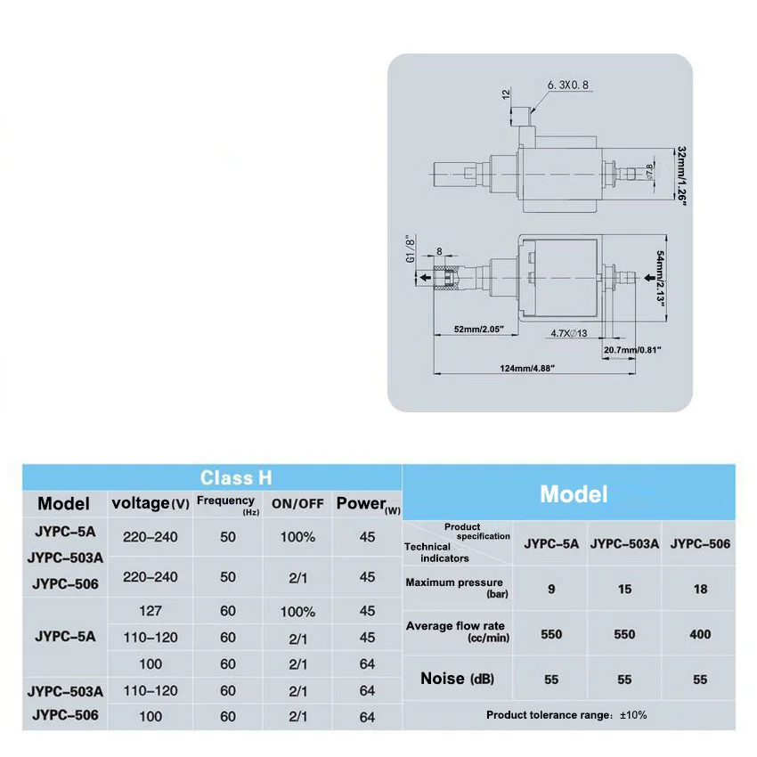 Электромагнитная кофемашина высокого давления Jiayin JYPC-5 AC 220-240 в 9 бар 45 Вт с самовсасывающим насосом, для водный Перистальтический Насос
