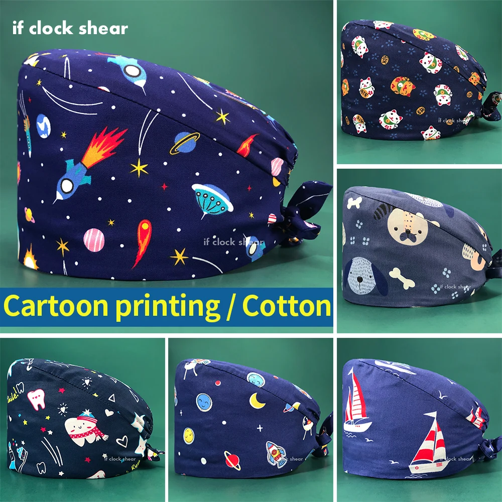 Модная медицинская шапочка с мультяшным принтом, унисекс, хлопковая...