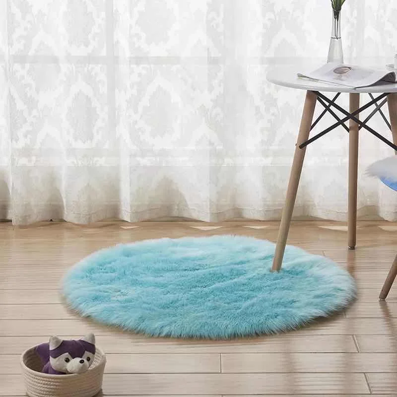 Круглые пушистые меховые коврики из искусственной овчины для спальн...