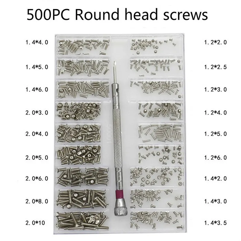 Набор мини-винтов сделай сам, 500 шт., 18 типов, набор ремонтных винтов для ремонта ноутбуков и компьютеров, набор миниатюрных винтов с отверткой