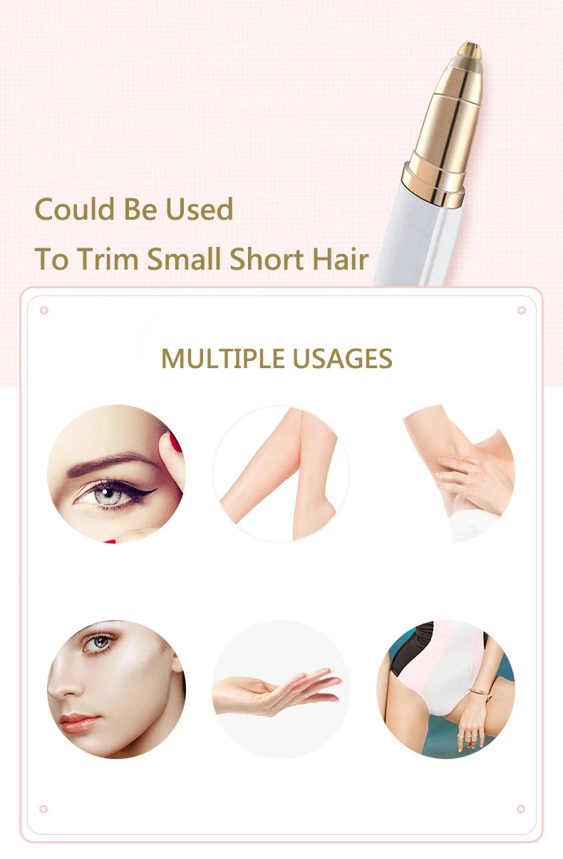 Машинка для безболезненного удаления волос, триммер для бровей, мини-бритва с аккумулятором, эпилятор, портативный, женский