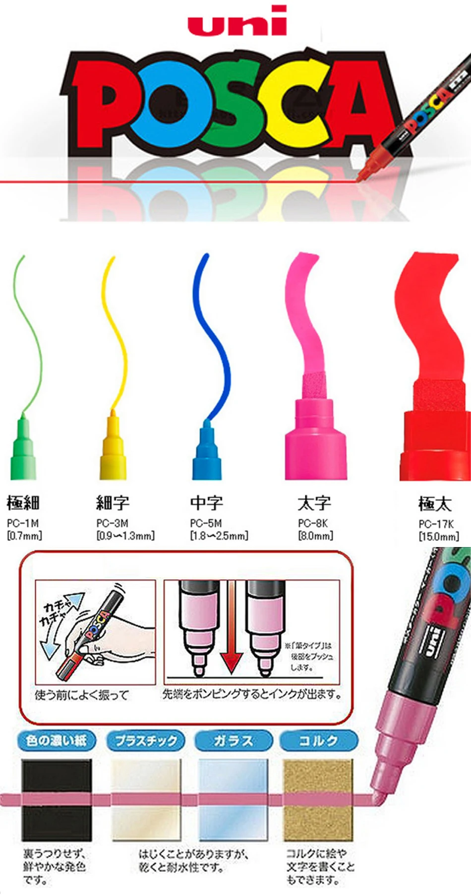 Uni маркер серии POSCA на водной основе PC-1M3 м5 м 212424 цветов ручная роспись комиксов граффити поп-постер реклама 0,7-2,5 мм