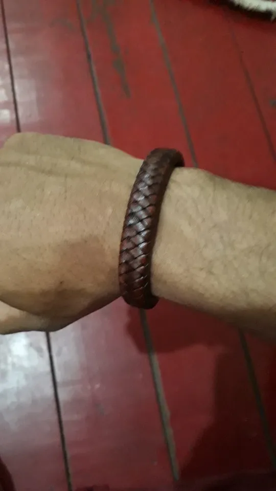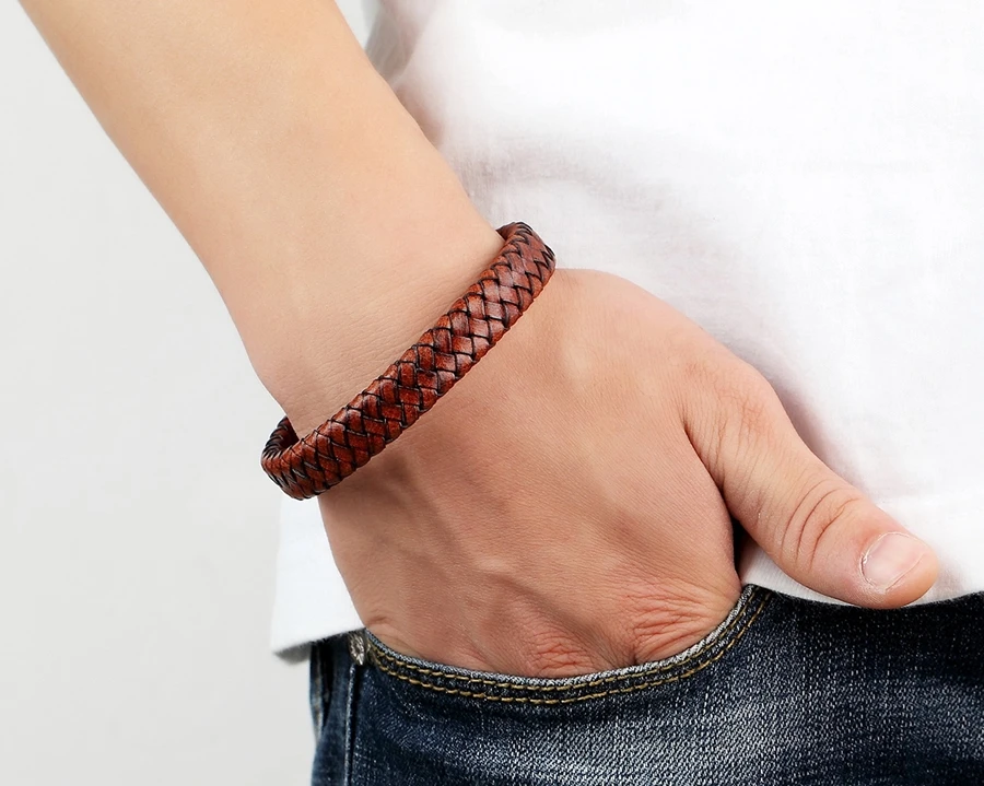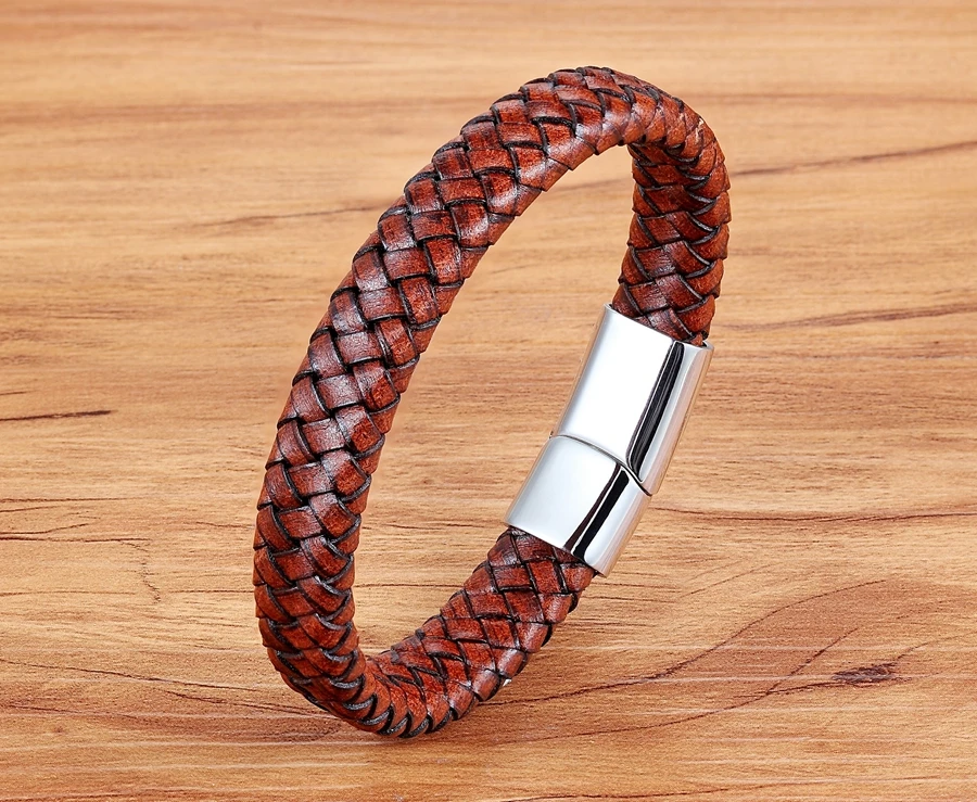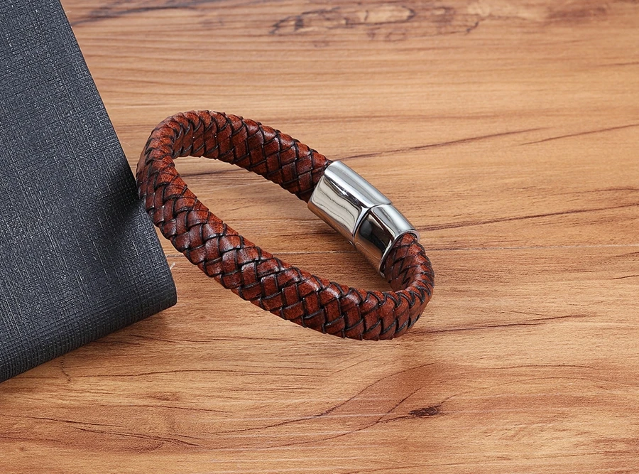Плетеный кожаный браслет из нержавеющей стали с магнитной застежкой