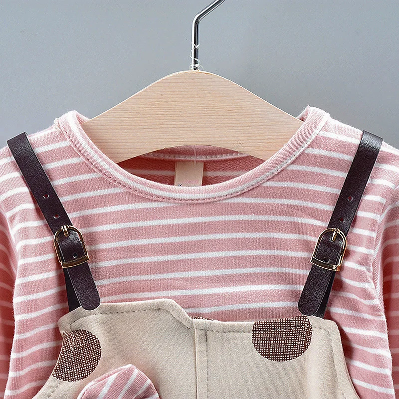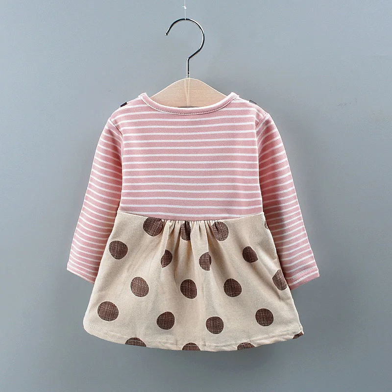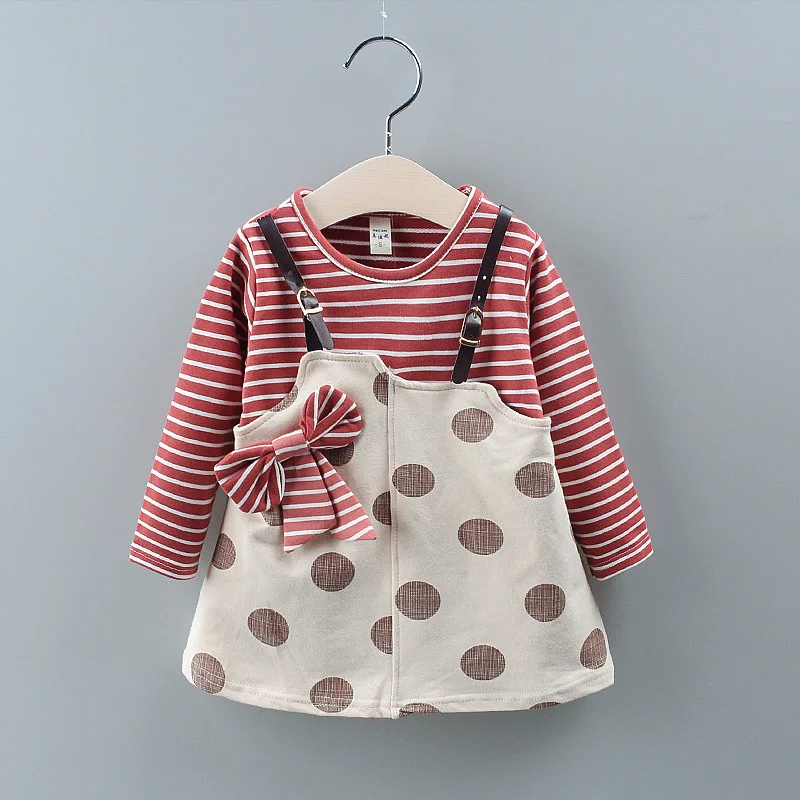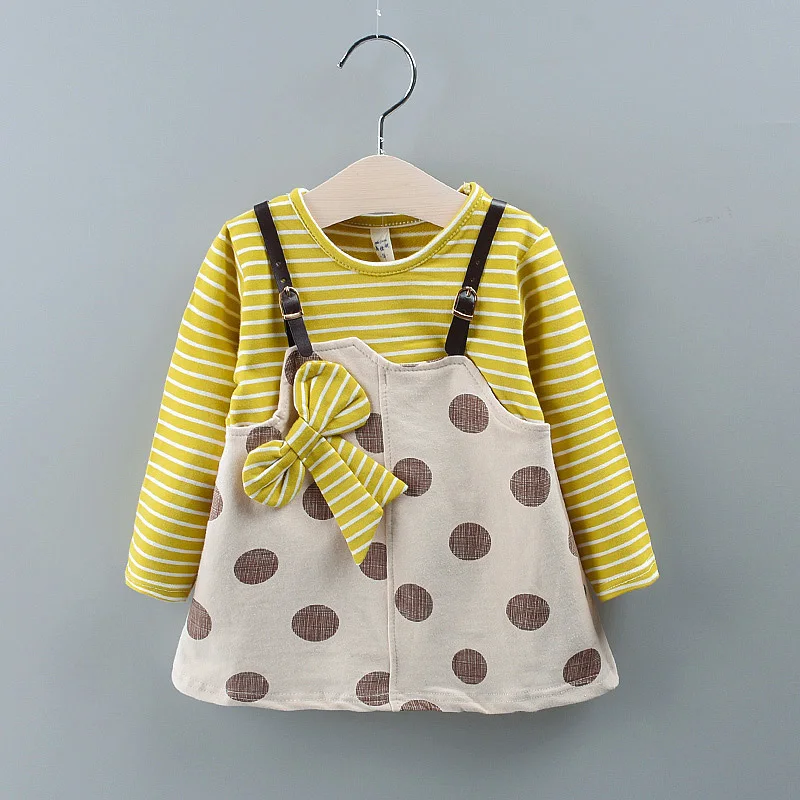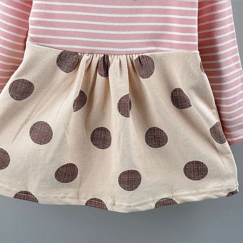 Осенняя детская одежда Humor Bear, новинка, платье с длинным рукавом для девочек, платье в полоску в горошек с имитацией двух предметов, детское платье с бантом