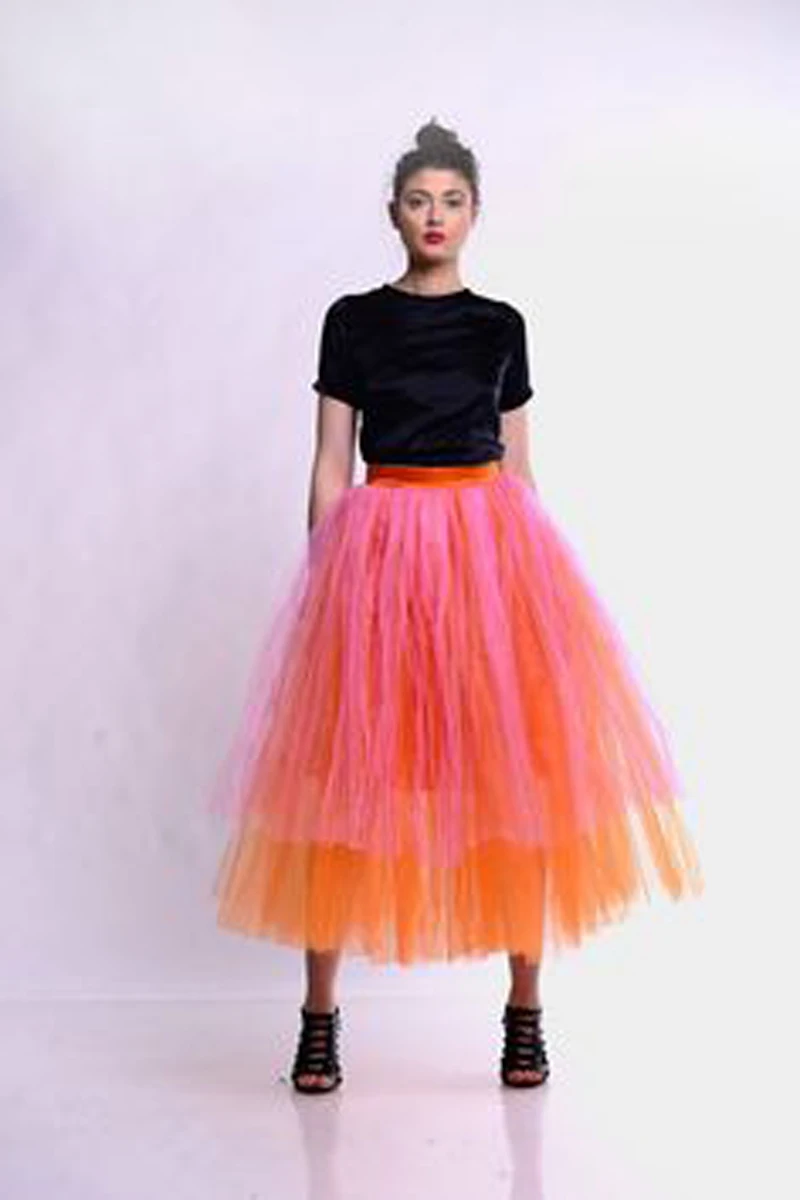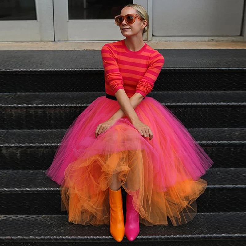 Женская юбка из фатина, двухцветная юбка до щиколотки, осенняя юбка, 2020
