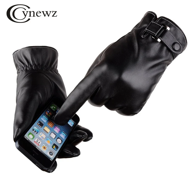 Мужские перчатки черные плюс бархатные рукавички эластичные полный палец Сенсорный экран ветрозащитные мужские зимние кожаные перчатки бизнес