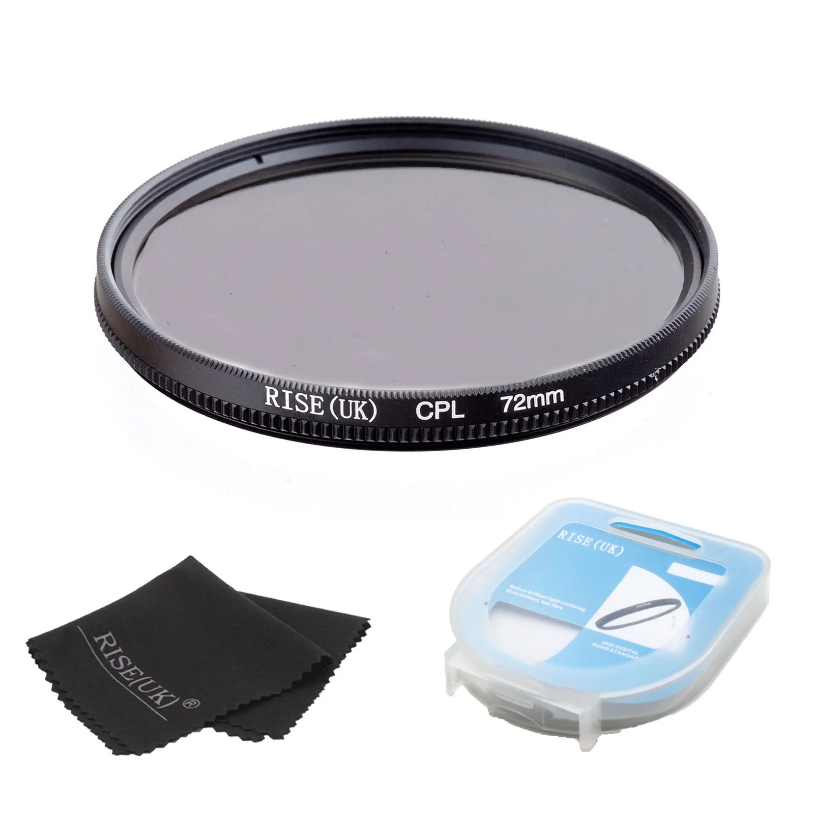 Круговой поляризационный фильтр RISE (Великобритания) 72 мм CPL C-PL, объектив + чехол + подарок для камеры Canon, NIKON, Sony, Olympus