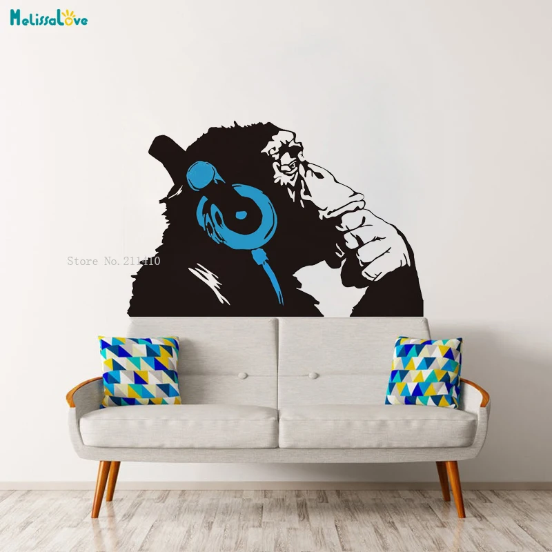 Виниловые наклейки в виде головы шимпанзе в наушниках, с изображением обезьяны и граффити, для прослушивания музыки, диджеев, YT4091