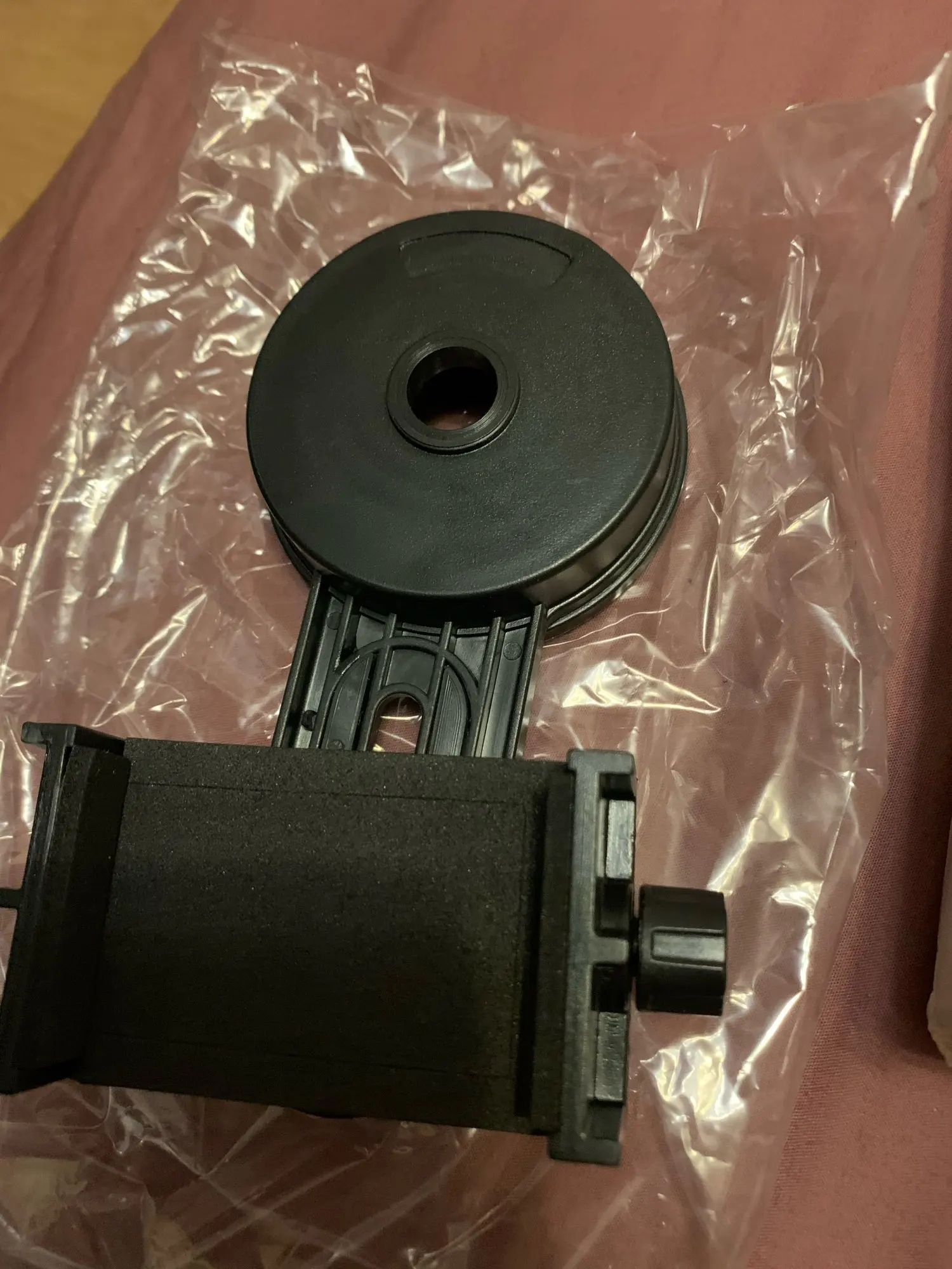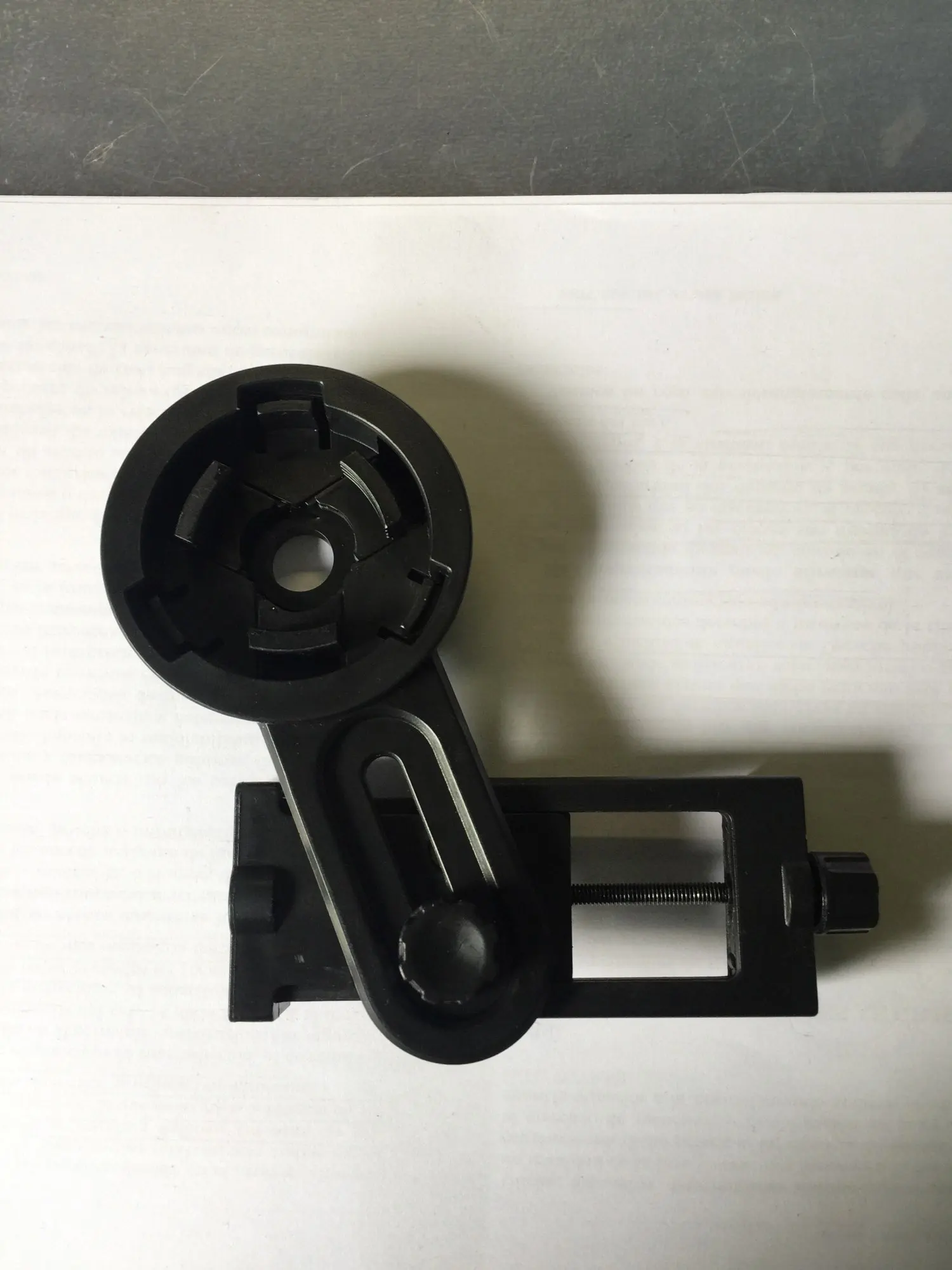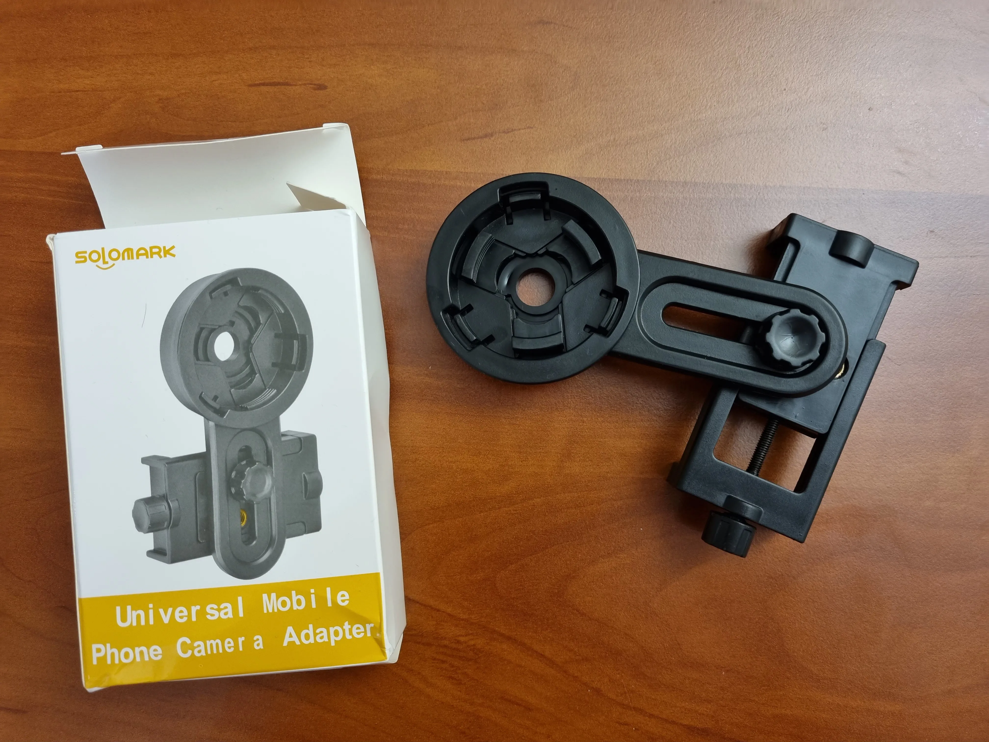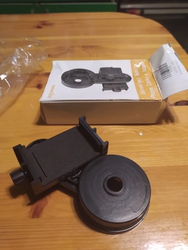 Это совсем не универсально, у него есть «вкладки», которые закрываются, чтобы прилипать к призматику/телескопу, но они слишком короткие. Тем не менее, это не плохое качество, и его можно использовать во многих устройствах, но ему не хватает ширины, чтобы увеличить мой телескоп.