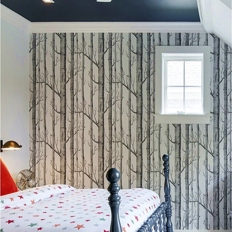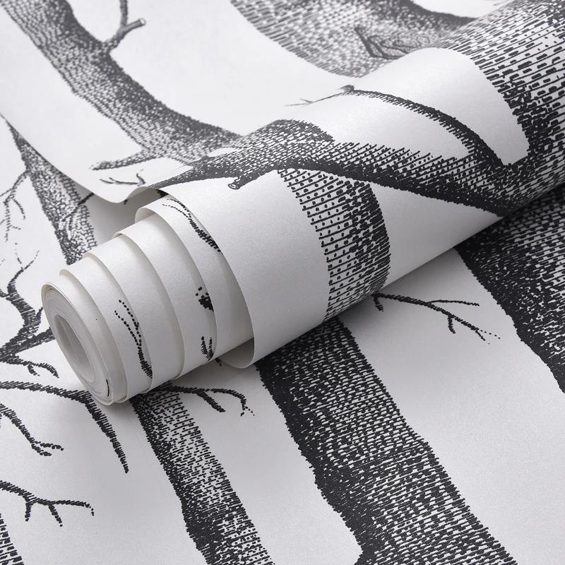Водонепроницаемые 3D-обои с изображением березы, черно-белые обои в современном стиле, простые рулонные деревянные обои в скандинавском стиле для спальни, гостиной