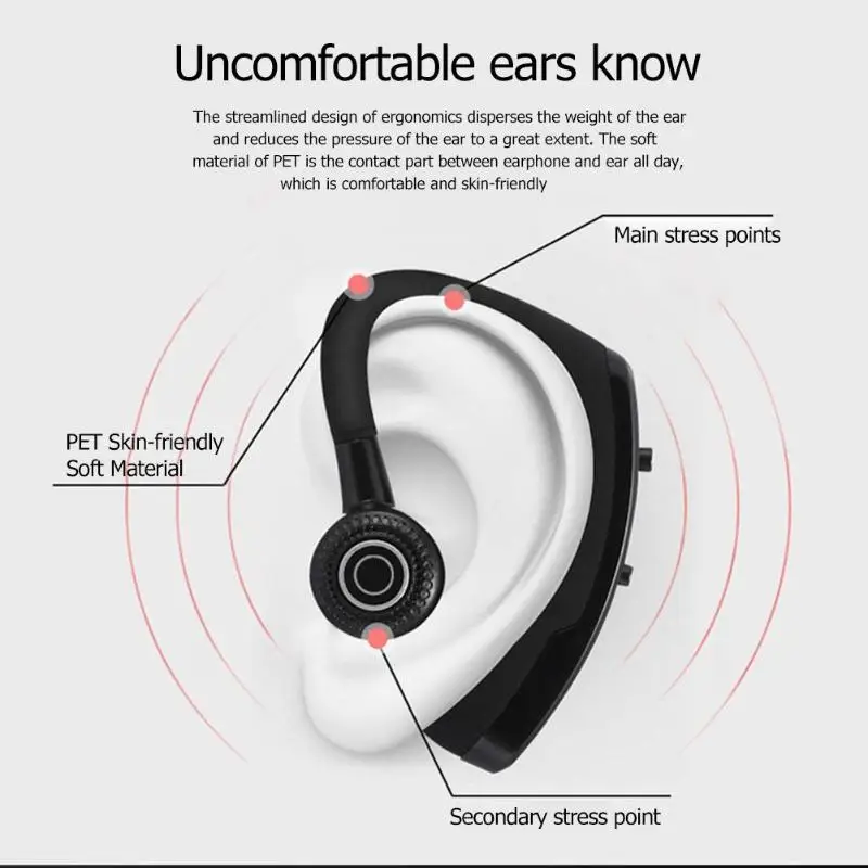 Compatible1V9 Car Handsfree Business Headset With Mic Earpiece For iPhone Samsung