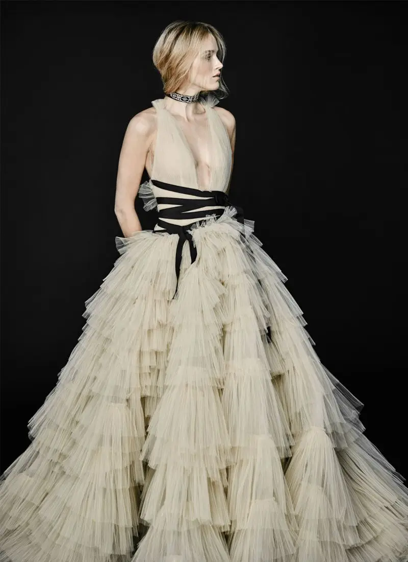 Изготовленное на заказ платье из тюля с оборками в несколько рядов ...
