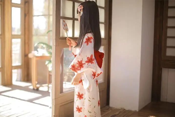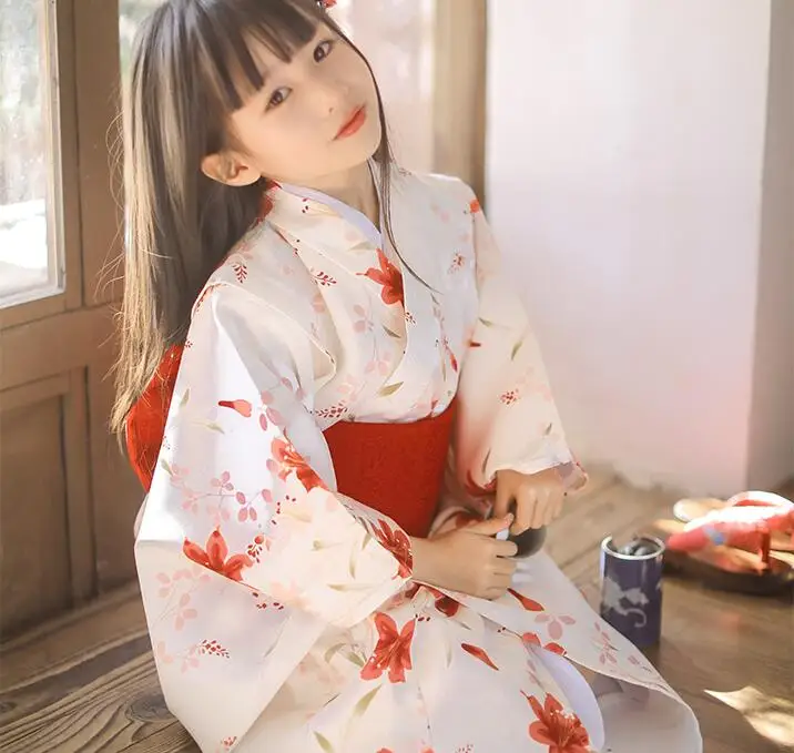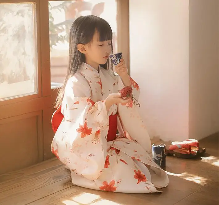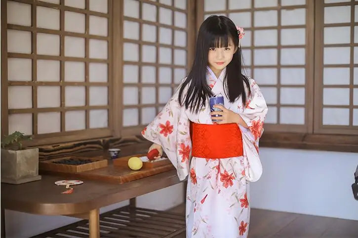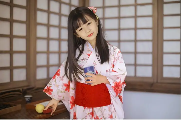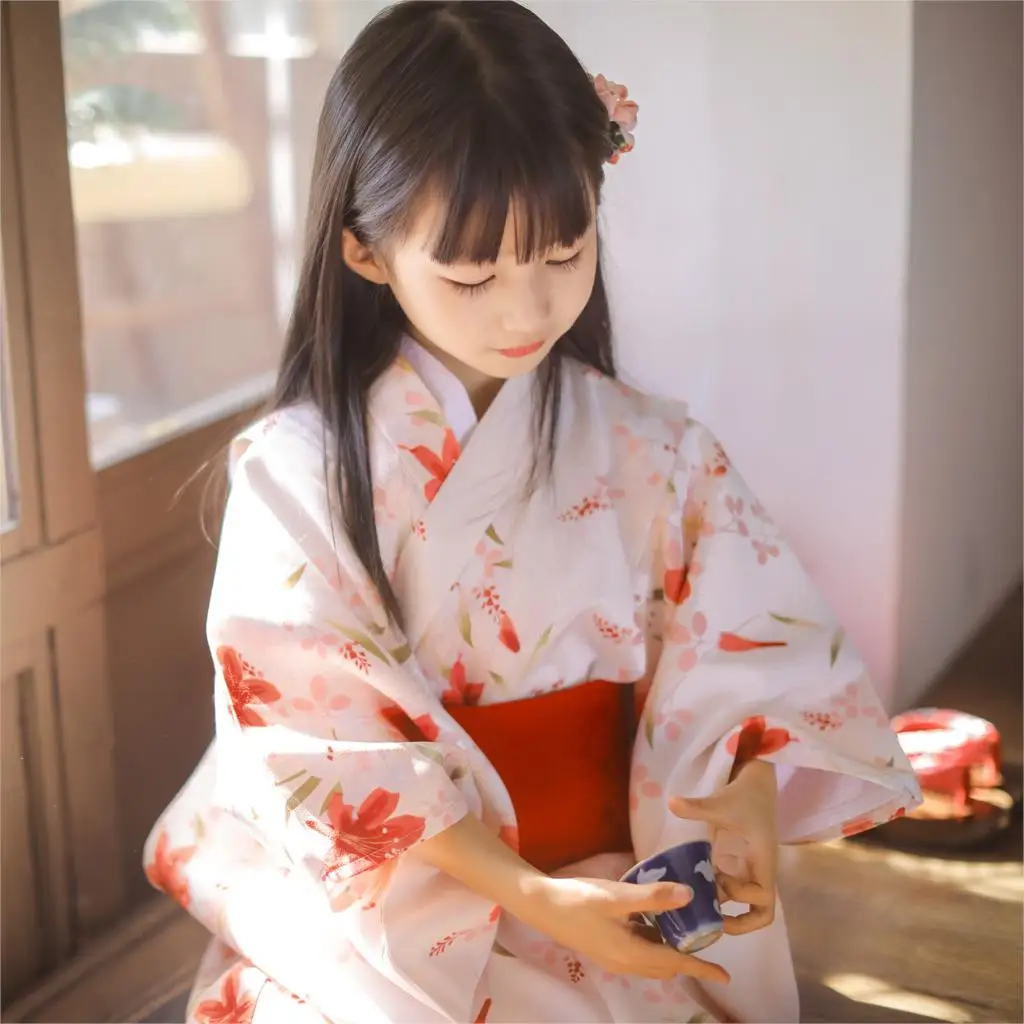 Детское кимоно в традиционном японском стиле с длинными рукавами, одежда для маленьких девочек, юката с принтом, 1 предмет, ZL890