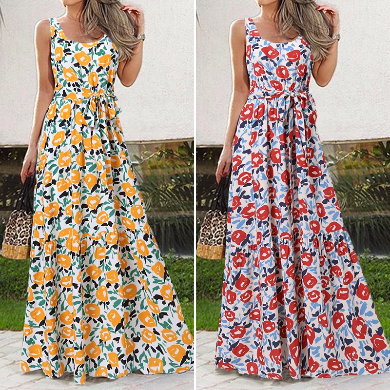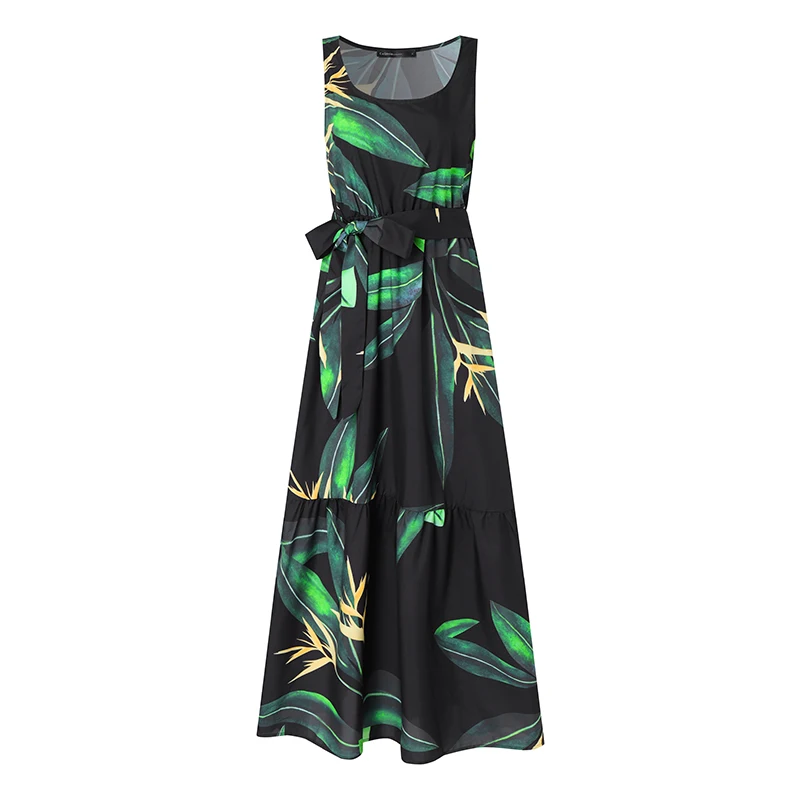 Платье Celmia женское с цветочным принтом, длинный сарафан без рукавов в богемном стиле, повседневный свободный плиссированный вечерний пляжный костюм с поясом, на лето