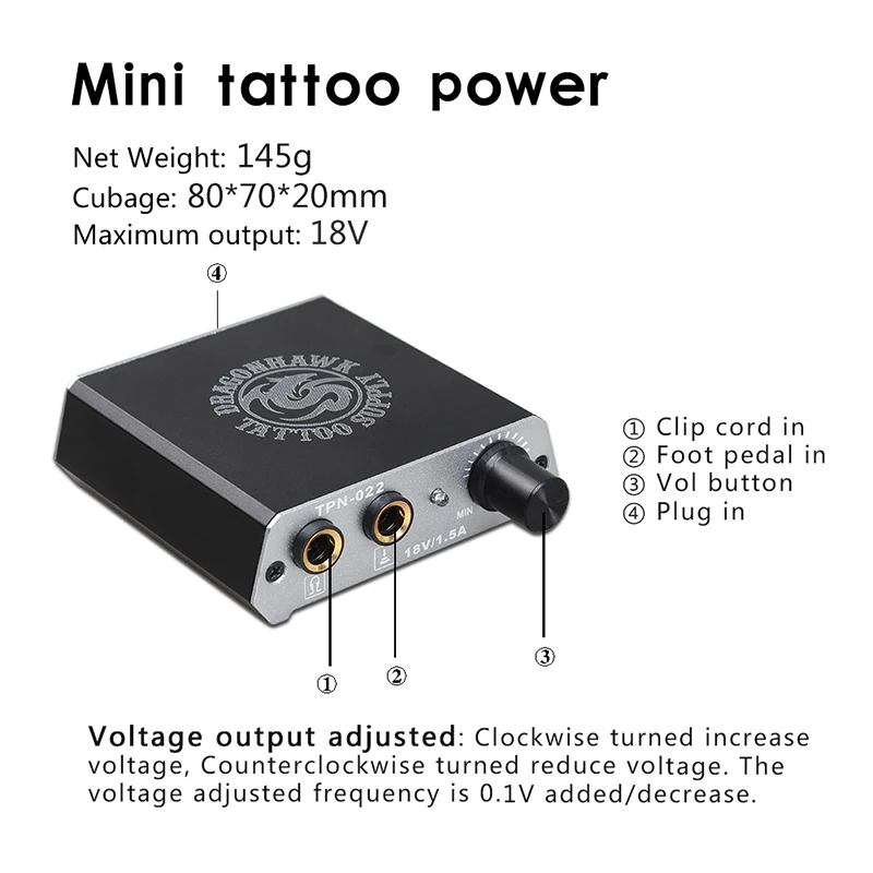 Блок питания для тату-машинки Dragonhawk, регулируемая Нескользящая...