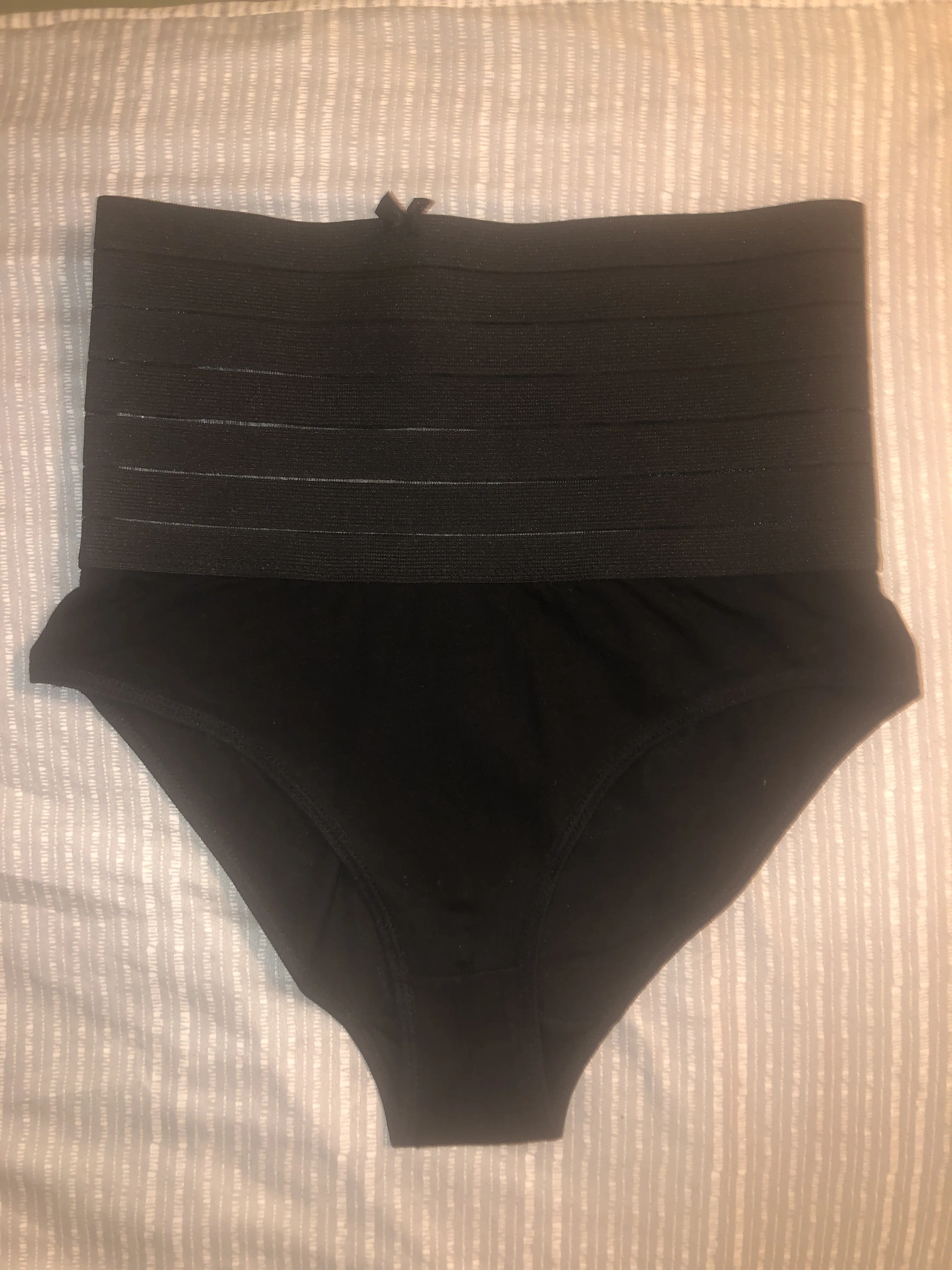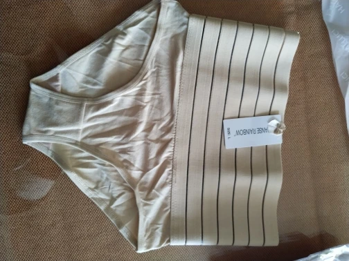 Jolie culotte avec partie inferieure en coton (bas ventre non maintenu) et partie superieure composée de 7 bandes elastiques (2 cm chacune, ) qui maintiennent bien mais remontent très haut. Problème, en position assise, ça coupe le ventre et debout a la marche, ça se replie et n est pas confortable et coutures apparentes