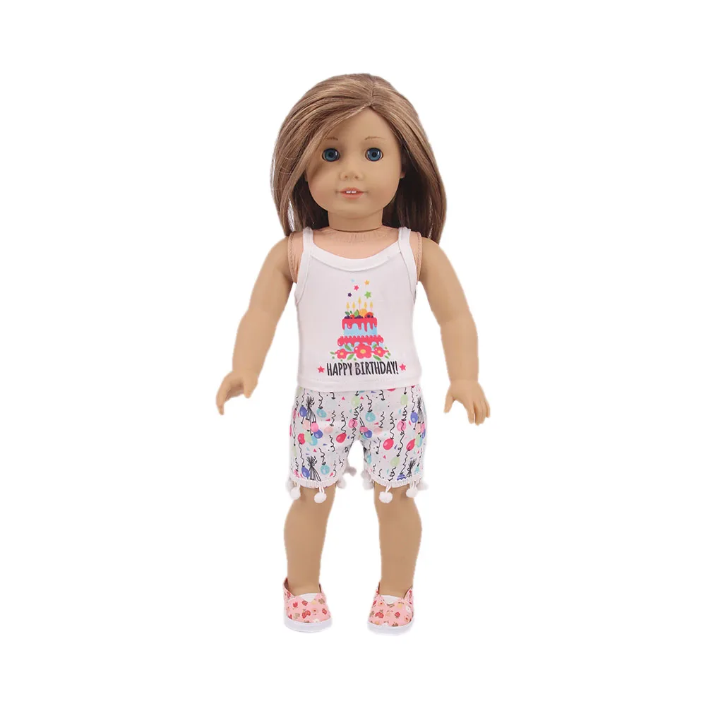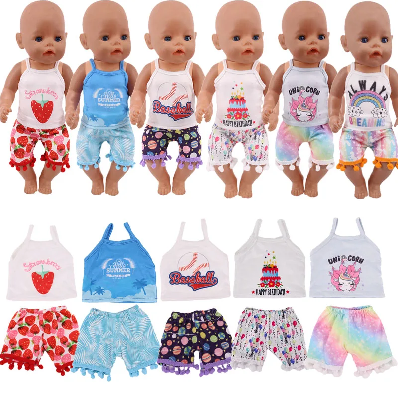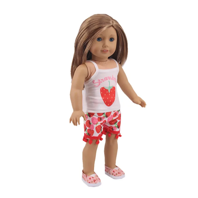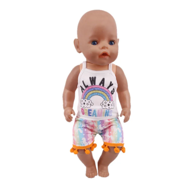 Подтяжки и штаны для кукол, 1 комплект, подтяжки с радужным рисунком клубники, подходит для кукол 18 дюймов и 43 см, аксессуары для одежды, Born Boby