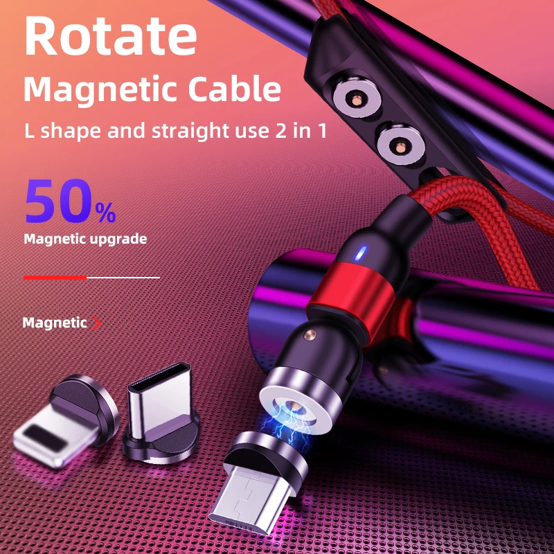 540 градусов Магнитный Кабель с разъемом Micro USB Type-C для быстр...