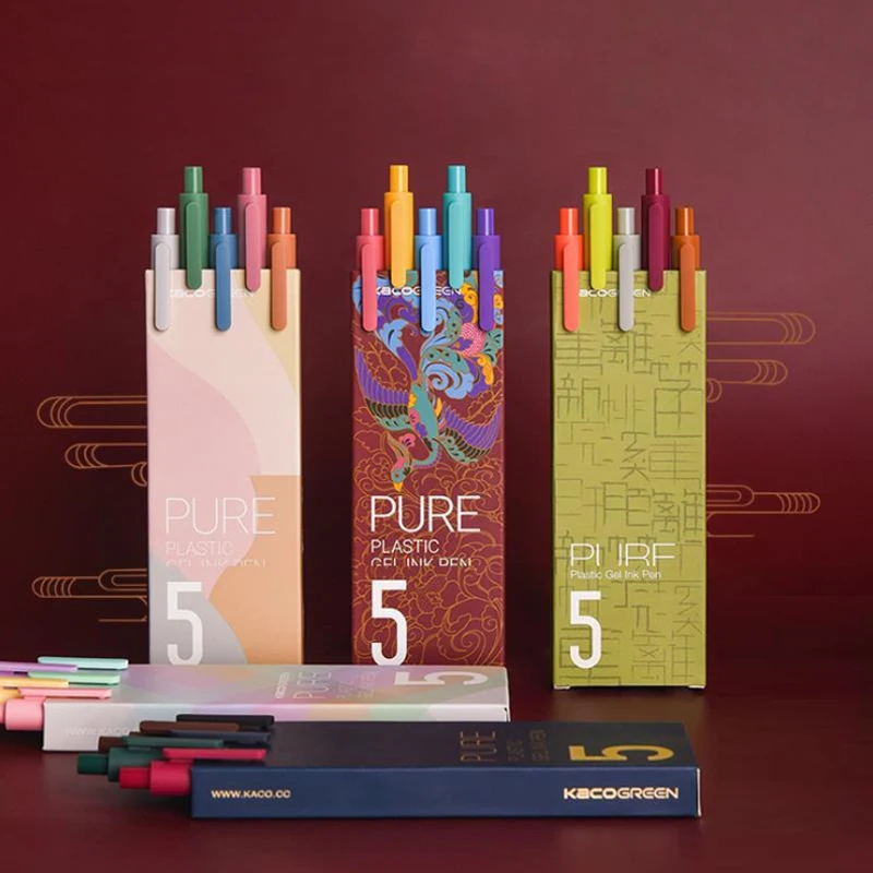 5 шт./упак. 5 новейшая ручка KACO Sign, гелевая ручка 0,5 мм, сменные гладкие чернила для письма, прочная ручка для подписей, 5 цветов, винтажный цветной стационарный
