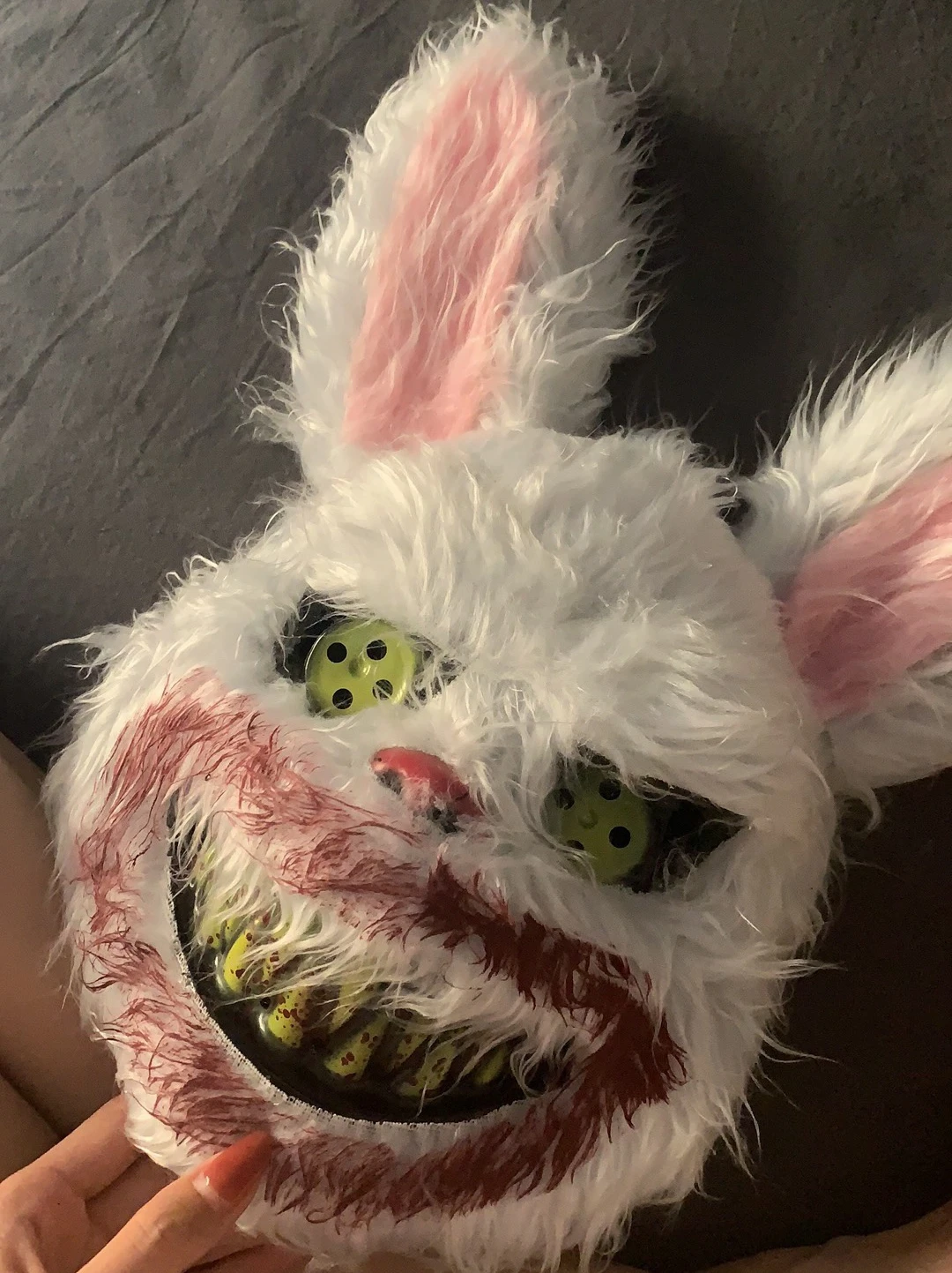 Название продукта: маска кровавого кролика Материал: ПВХ + плюш Размер: около 12,8 * 6.3in для большинства Вес: около 100 г Упаковка: полипропиленовый пакет