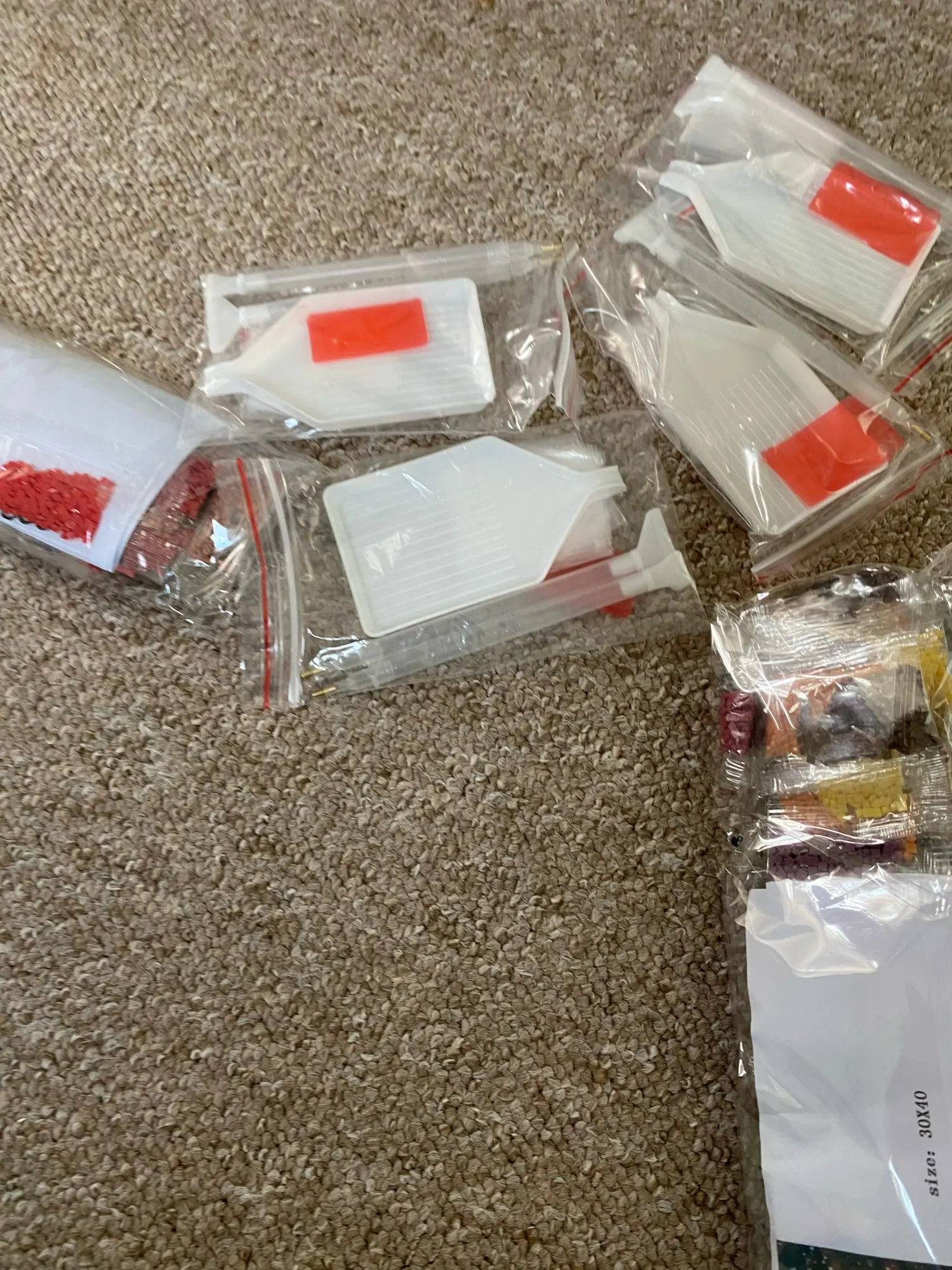 Поместите алмазы в ящик для хранения сверл (2x6 ) , наклейте наклейку, напишите номер цвета, измените другой Цвет бриллиантов.