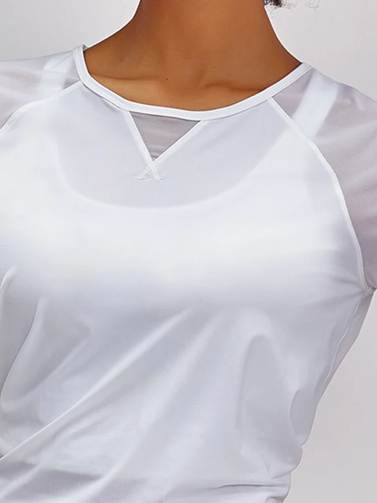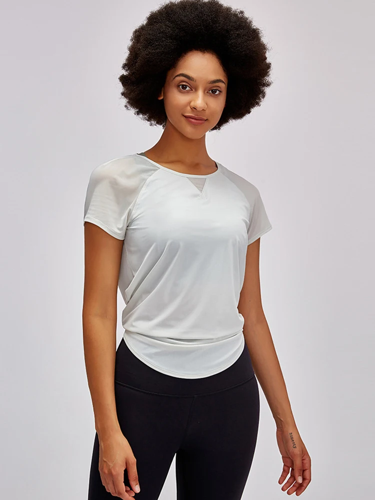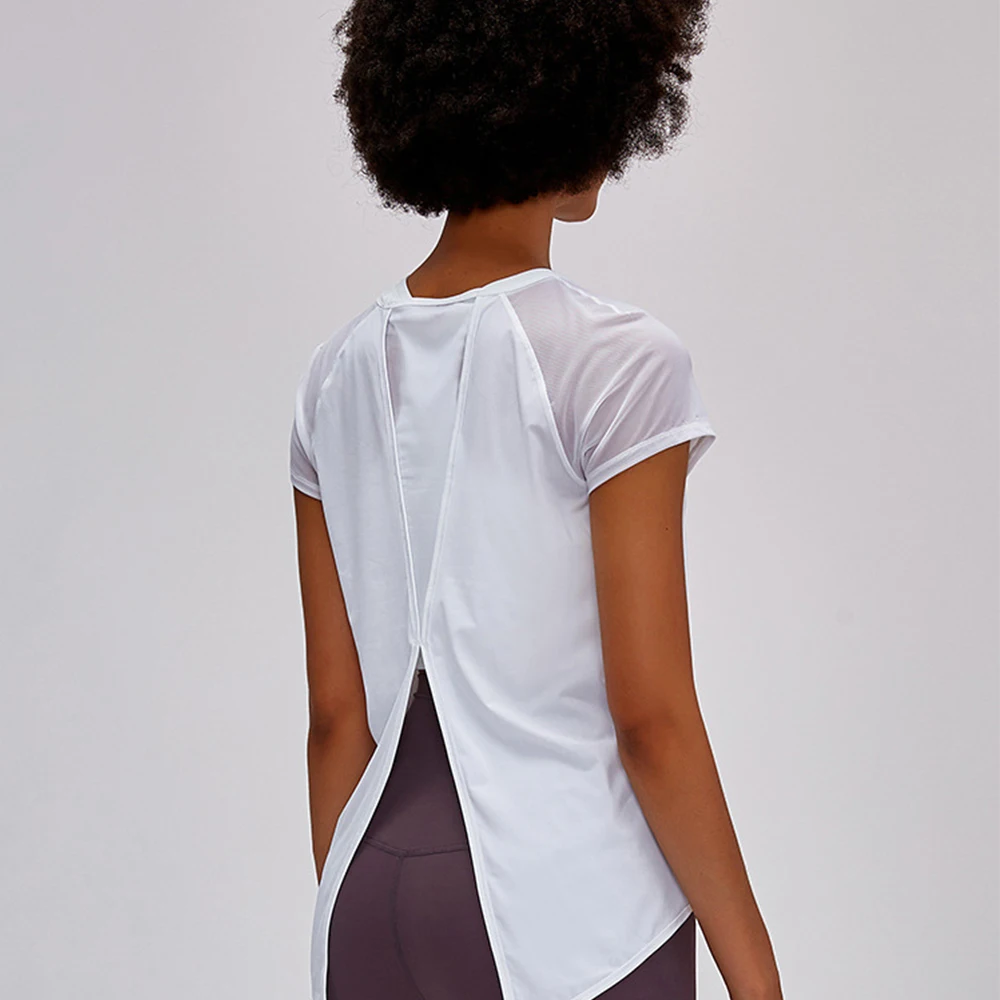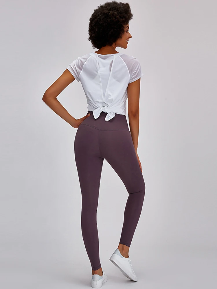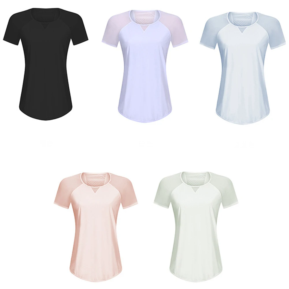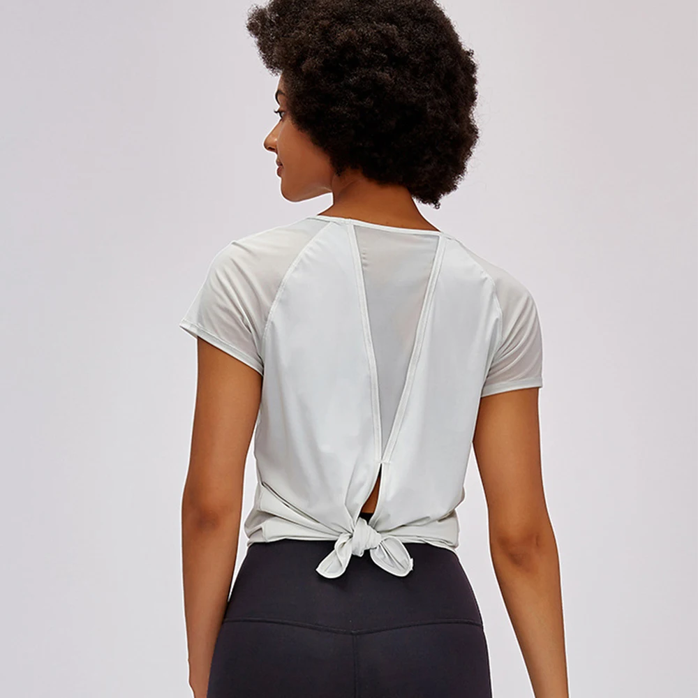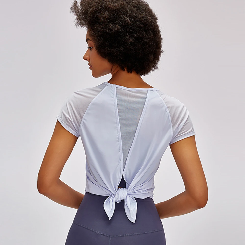 Женская Спортивная футболка для йоги с коротким рукавом, однотонная бандажная модная Красивая свободная быстросохнущая дышащая блузка