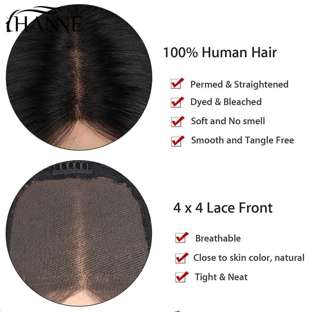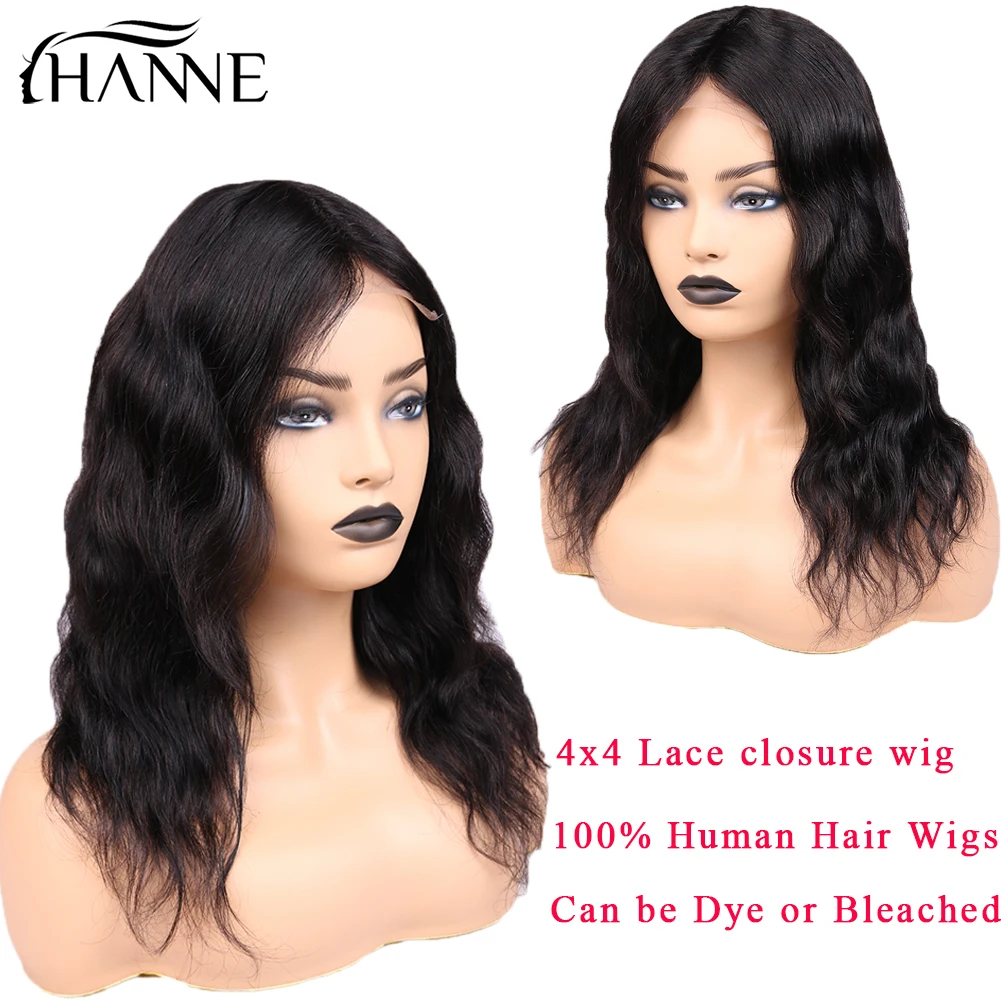 HANNE парик волнистые человеческие волосы парики бразильские кружевные передние человеческие волосы для черных женщин 4x4 Remy Glueless кружева закрытие натуральный парик