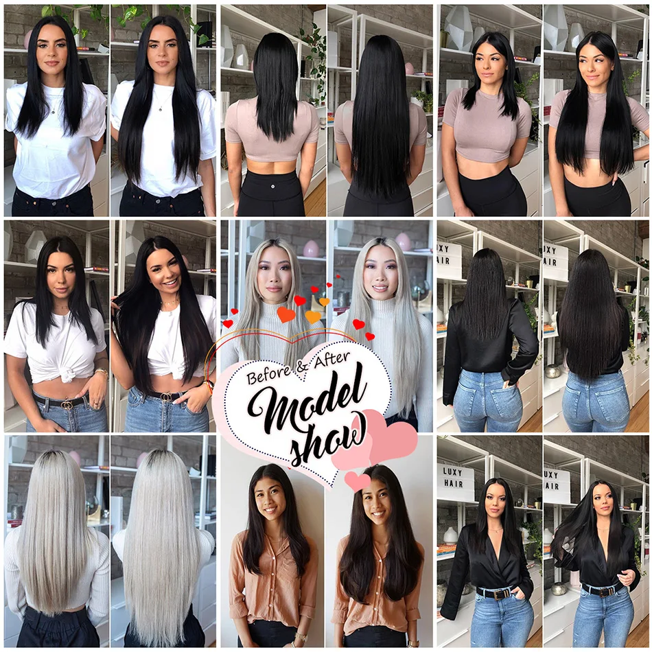 3. Необходимое количество волос:Модель на фотографиях носит 2 комплекта прямых зажимов, обычно 2 упаковки рекомендуются покупателям, которые имеют тонкий тип волос, чтобы добавить длину и объем, если вам нравятся густые волосы.