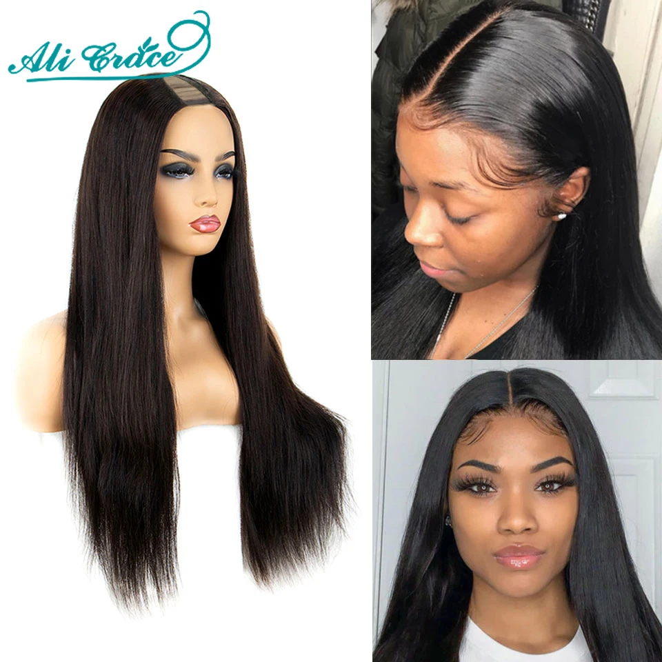 Парики Ali Grace, парики с U-образной частью, парики из человеческих волос для женщин, перуанские прямые волосы, парики без клея из человеческих волос, могут быть запертыми и окрашенными
