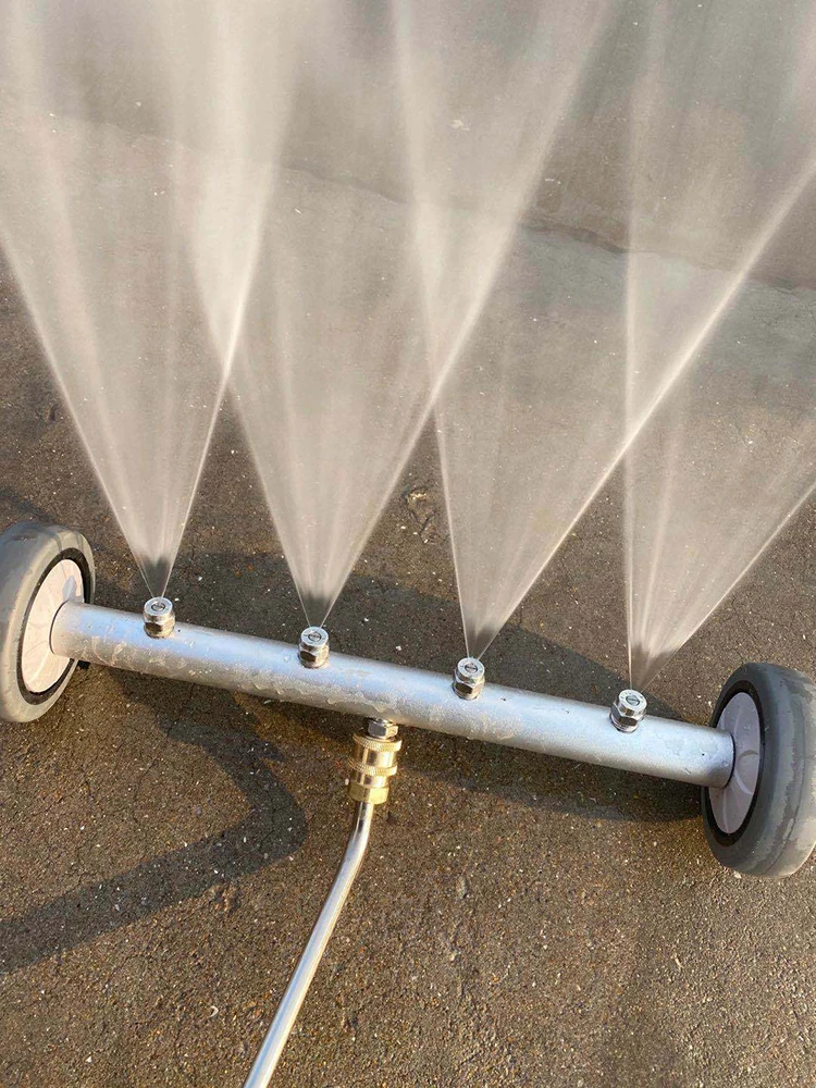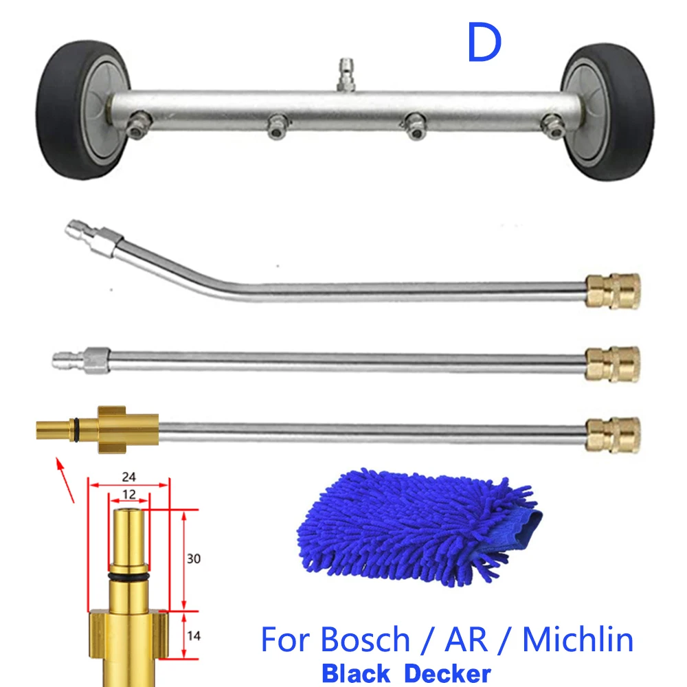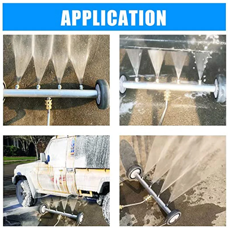 Описание размера: 16,1 дюйма ходовая шайба, 32 см дюймов прямая удлинительная палочка и 32 см 45 градусов изогнутая палочка. Их размер больше, чем тот же тип автомобильного очистителя. Под мойкой автомобиля с 4 распылительными насадками и 2 колесиками, можно использовать для горячей и холодной воды.