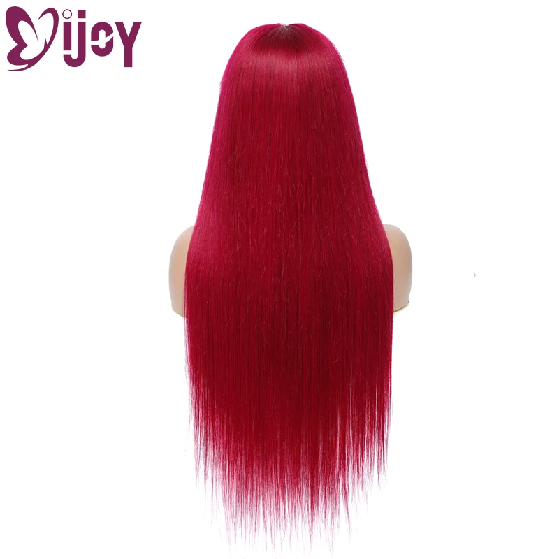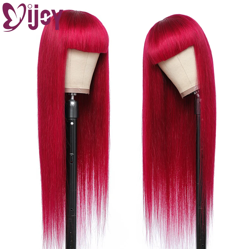 IJOY Прямые парики из натуральных волос с челкой, полностью машинные парики 99J бордовый, бразильский парик из натуральных волос Реми для чернокожих женщин