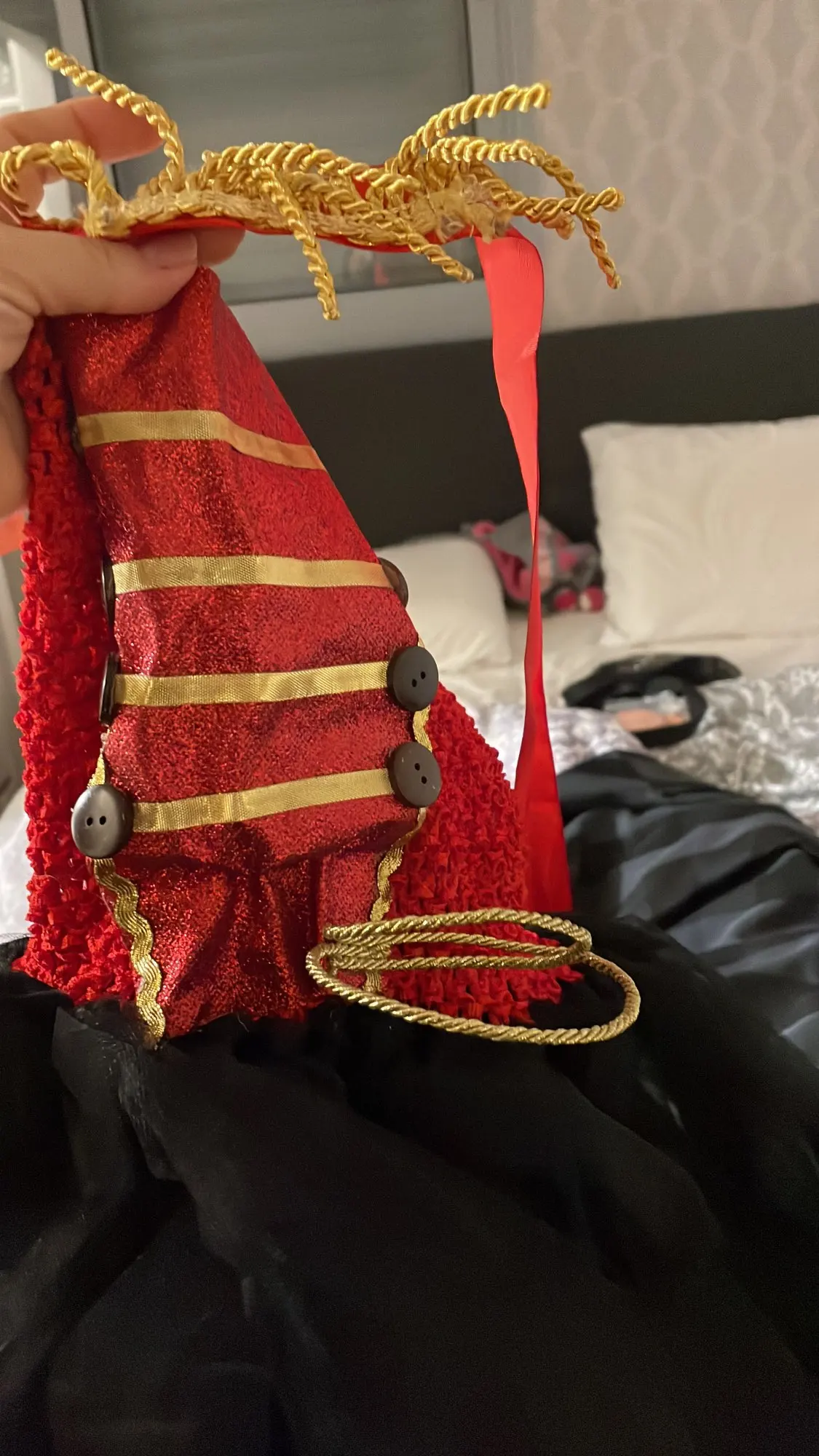 3. Наше платье «Щелкунчик» отличается красным сверкающим топом с кисточками на плечах, выглядит потрясающе.