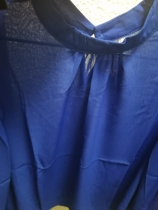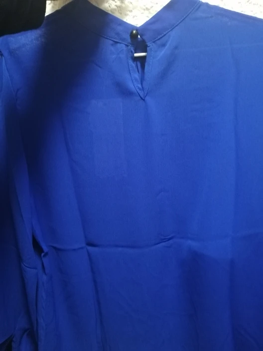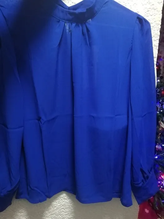 Как на картинке. Приятная ткань, немного прозрачная, одного цвета. Обычно я ношу S, я получил L и хорошо сидит на мне, немного свободно, но я предпочитаю этот способ, поэтому рукава также достаточно длинные. На спине есть пуговица. Мне нравится!