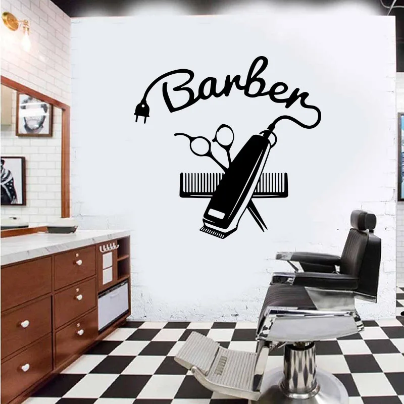 Большая наклейка на стену для парикмахерской, салона, салона красоты, парикмахера, прически, машинки для стрижки волос, стеклянная Наклейка на стену, виниловый Декор