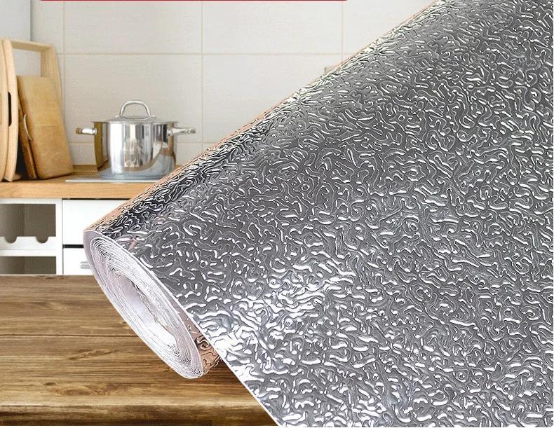 Кухонные настенные стикеры сделай сам, наклейки из алюминиевой фольги, плиты, шкафы, водонепроницаемые и водонепроницаемые обои, украшение