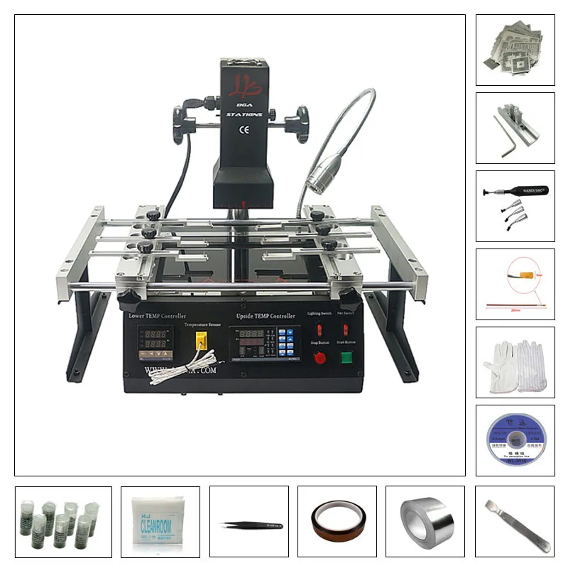 ВведениеIR6500 V.2 паяльная станция для материнских плат для ноутбуков, настольных компьютерных материнских плат, серверных плат, промышленных компьютерных досок, всех видов игровых досок, аппаратуры связи материнских плат, ЖК-телевизоров и других больших печатных плат BGA переработка.