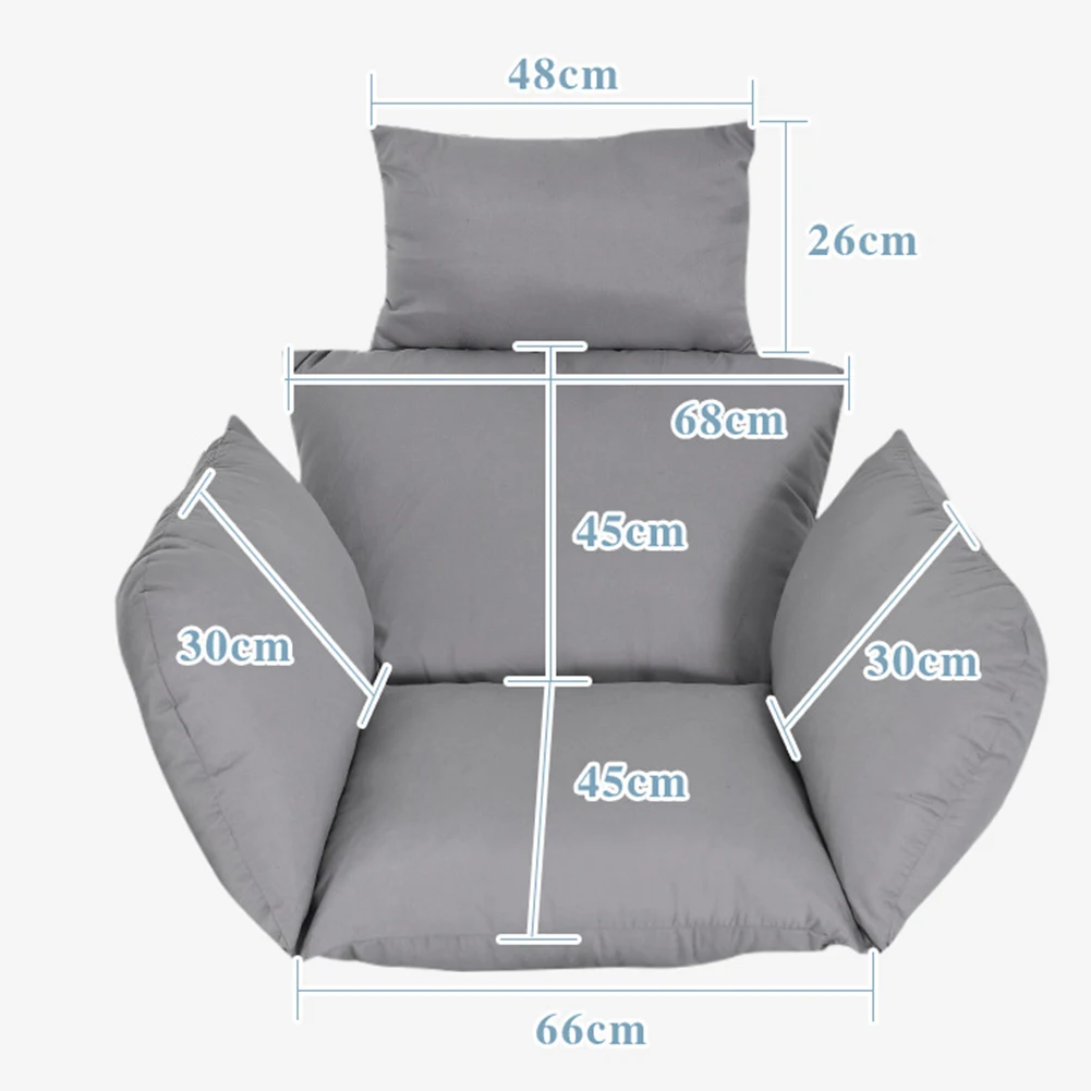 Домашнее однотонное кресло-качели в форме яйца, подушка, коврик для внутреннего дворика, подвесное сиденье Характеристики: Внутренняя подкладка из высококачественного полиэстера обеспечит Вам мягкую и удобную подушку для сидения. Эта подушка оснащена прочной роликовой головкой на молнии для длительного использования. Утолщенная структура 6D подушки не легко деформируется, а также позволяет никогда не ощущать структуру кресла-качели или плетеного кресла. Он идеально подходит для вашего гамака, подвесной корзины, кухонного кресла, кресла-качалки, кресла для патио и так далее. Наименование товара: коврик для кресла-качели Материал: полиэстер Особенности: удобный, прочный, дышащий, однотонный Размер: 66 см x 45 см x 71 см/25,98 дюйма x 17,71 дюйма x 27,95 дюйма (прибл.) Примечания: Из-за разницы в освещении и настройках экрана цвет товара может сильно отличаться от изображений. Замеры сделаны вручную, поэтому возможны незначительные отклонения в размерах. Посылка входит: 1 x Коврик для кресла-качели
