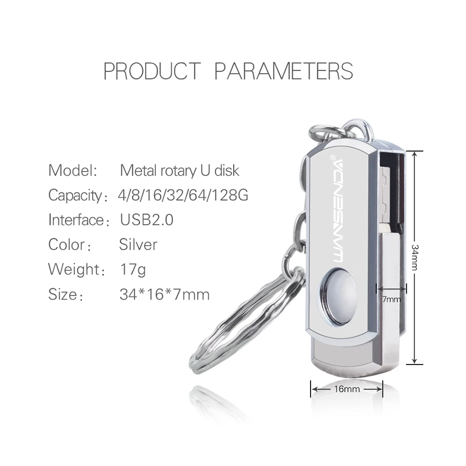 Wansenda Нержавеющаясталь поворотный флэш-накопитель USB брелок флеш-накопитель 8 Гб оперативной памяти, 16 Гб встроенной памяти, 32 ГБ, 64 ГБ, 128 ГБ флэш-накопитель USB пользовательских 2,0 Memory Stick
