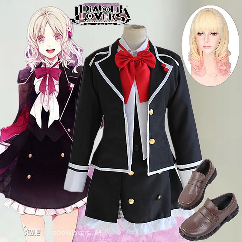 Komori Yui Косплей Аниме дьявольский костюмы для влюбленных Хэллоуин Карнавальная женская форма + парики Komori Yui полный комплект школьная форма