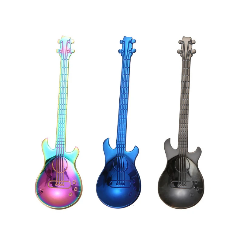 Гитарная ложка из нержавеющей стали 1 шт., креативная ложка для молочного кофе, мороженого, конфет, кухонная чайная ложка, аксессуары для кофе