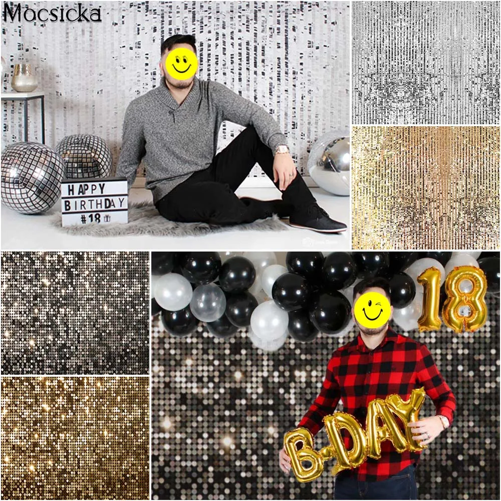 Фон из блестящей ткани для студийной фотосъемки на день рождения с изображением серебряных мозаичных светлых Пятен и звезд