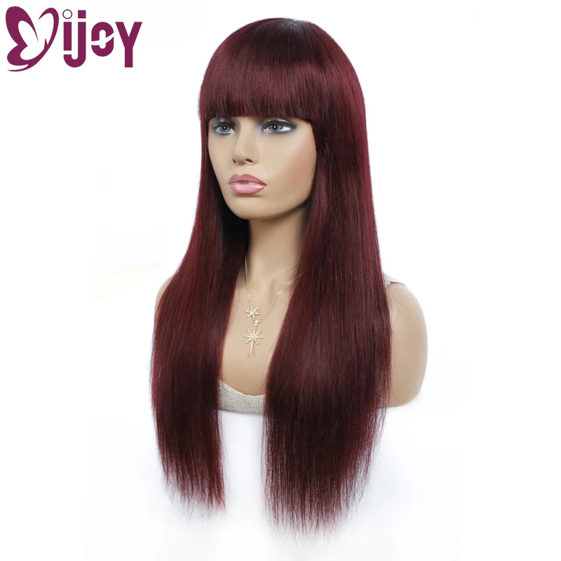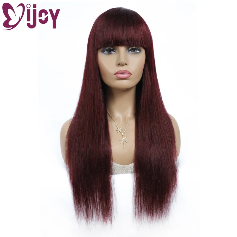 Бразильские прямые человеческие волосы 99J Redwine с челкой, парик для черных женщин, бразильский недорогой парик без повреждений IJOY