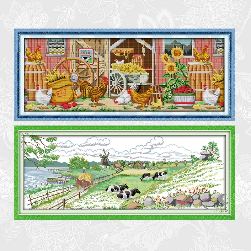 Пейзаж сельской местности 11CT, рассчитан на холст DMC 14CT, наборы...