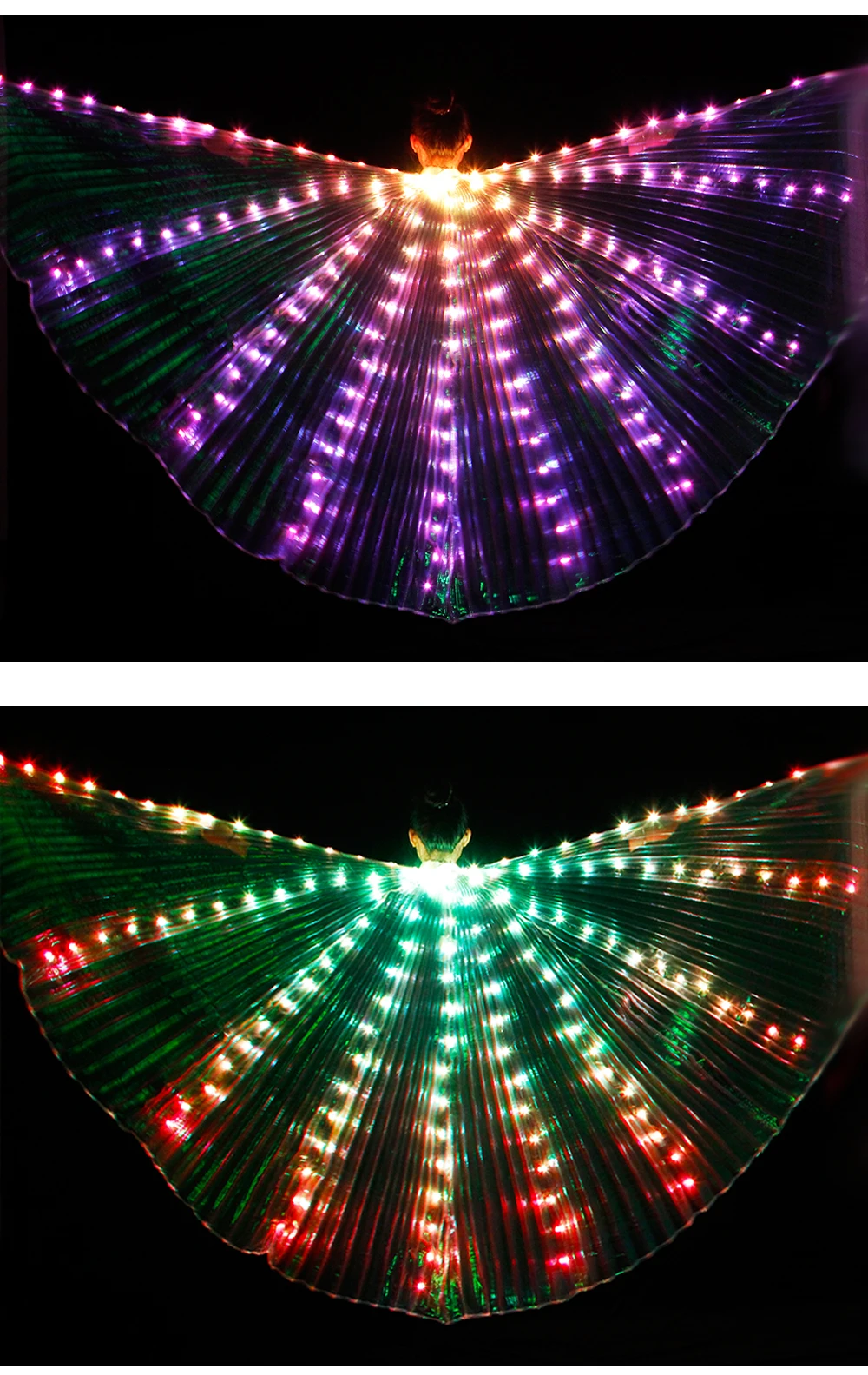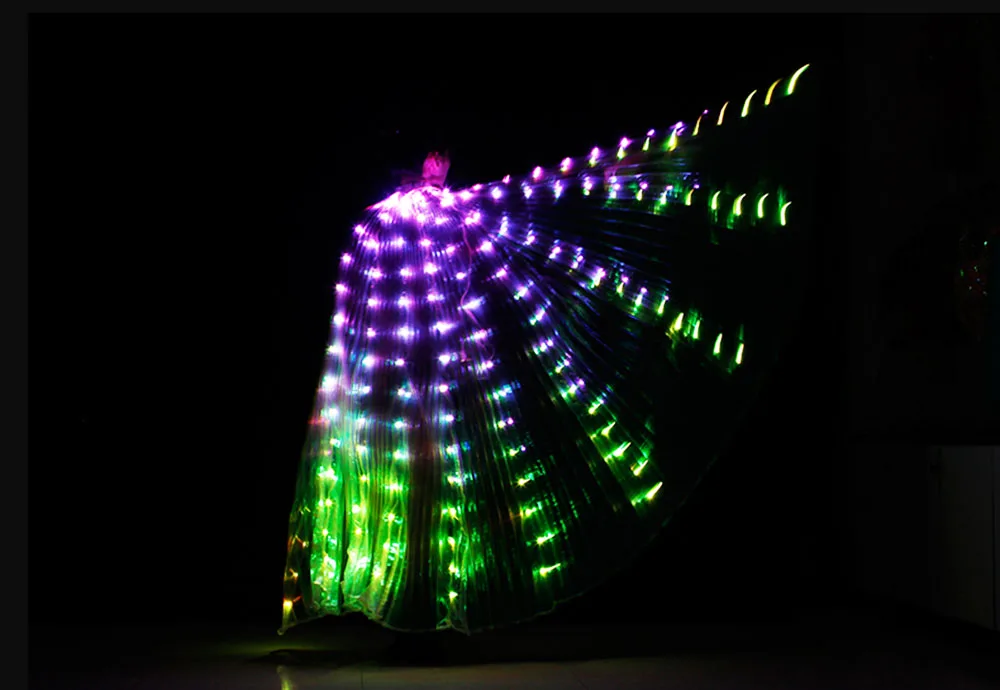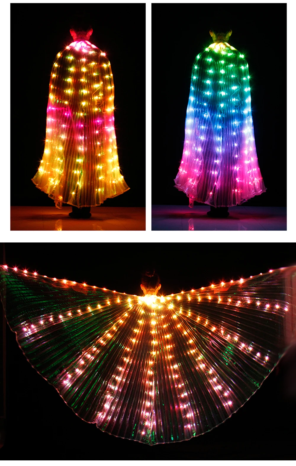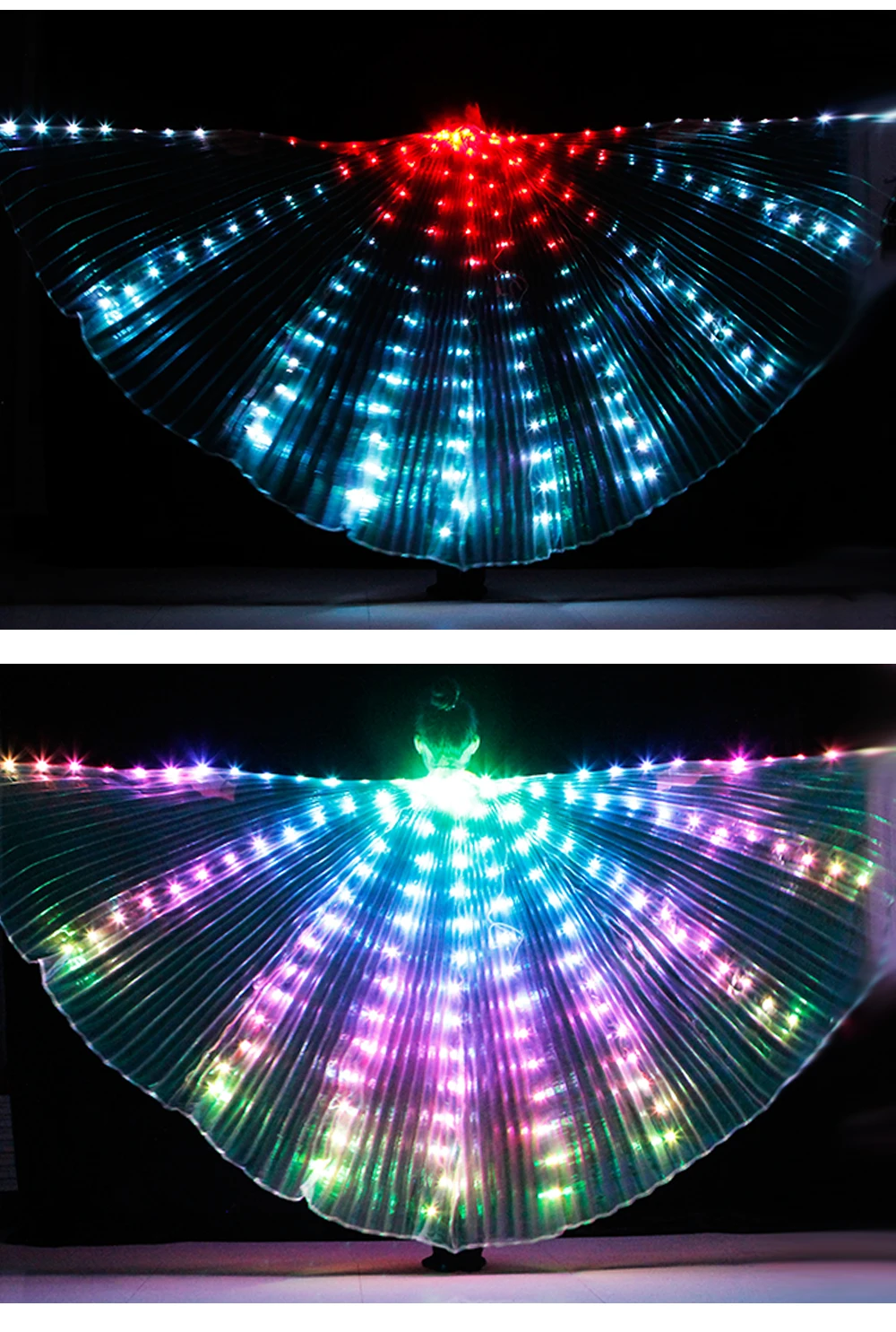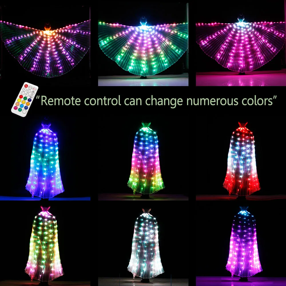 Светодиодные Крылья увы радужного цвета со светодиодной подсветкой, Светящиеся Крылья Исиды, танцевальная одежда с дистанционным управлением, цирковые светодиодные светящиеся костюмы