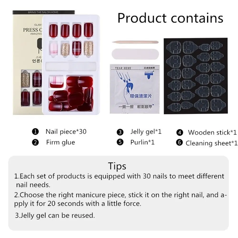 Поставляется с клейкими наклейками и обычным клеем для ногтей