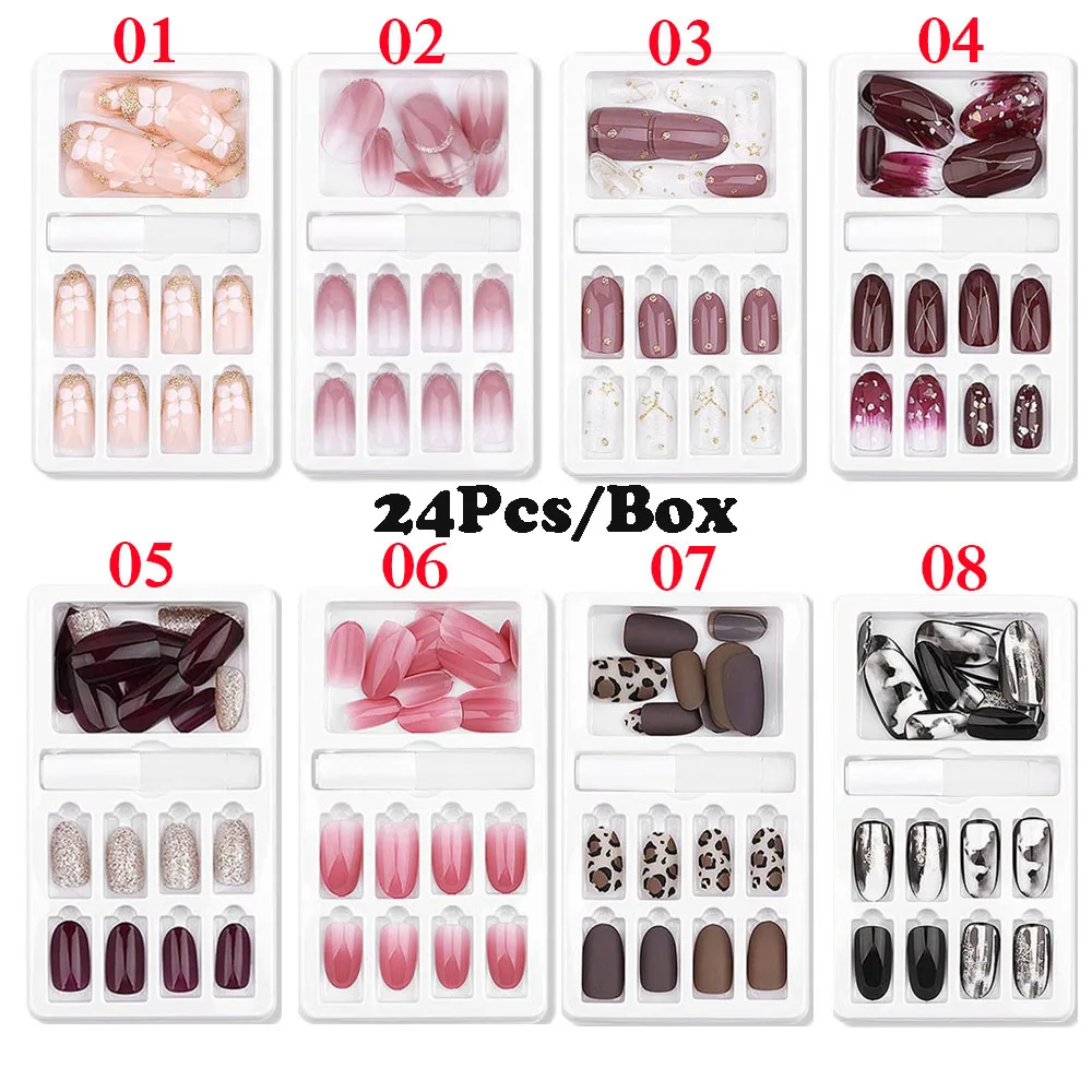Накладные ногти, акриловые, многоразовые, с клеем, для маникюра, полное покрытие, украшения для ногтей накладных ногтей, Набор 3024 шт.
