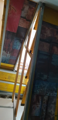 Он прибыл завернутым и приклеенным тремя окрашенными лентами, которые при удалении подняли защитный пластик винила. В остальном это очень красиво. Мы не хотели, чтобы он был помещен в дверь, а в нижней части лестницы, но он был коротким. Я попрошу больше